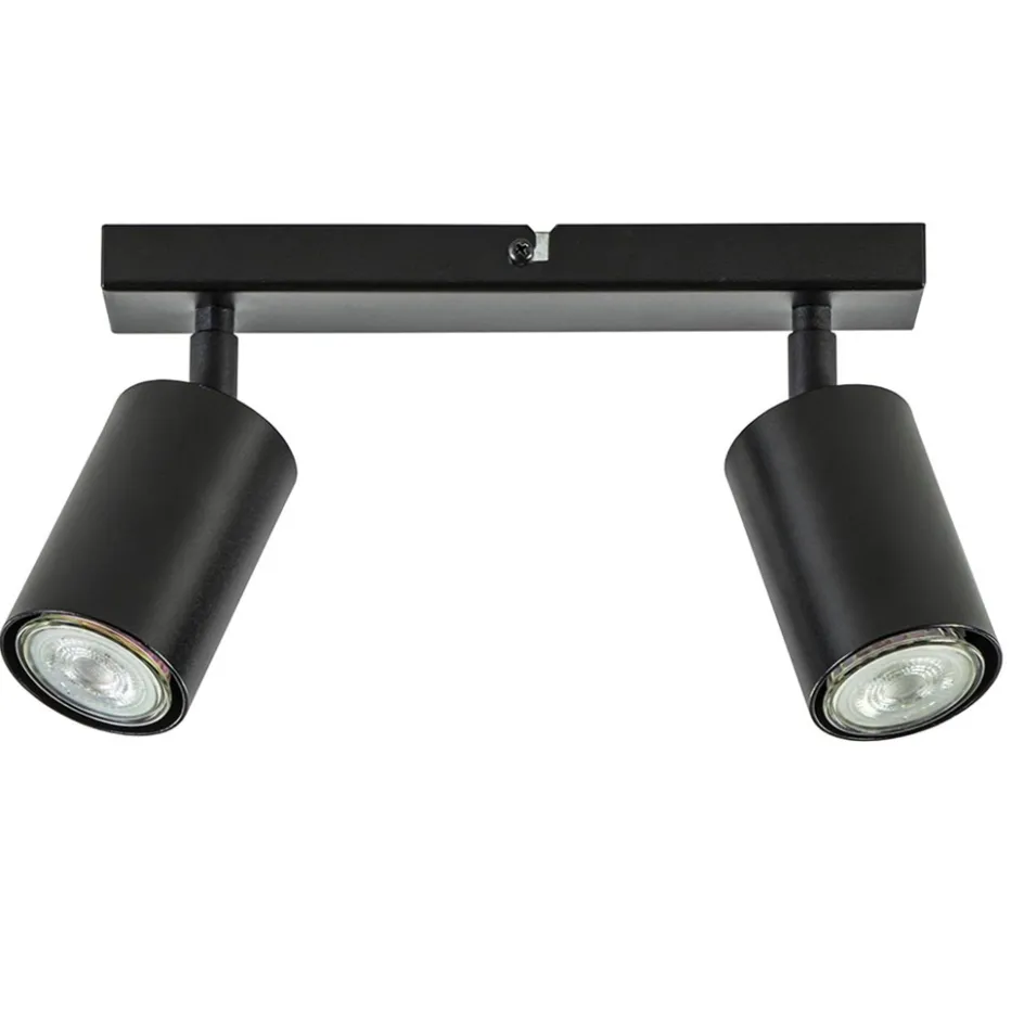 Prima geschikt voor een kleine kamer, hal of overloop. Deze 2-lichts opbouwspot zorgt voor genoeg licht een in wat kleinere ruimte. De plafondspot is gemaakt van metaal en uitgevoerd in het mat zwart. De cilinder vormige spots zijn naar wens te verstellen door deze te draaien en/of kantelen. Ideaal om naar twee kanten te verlichten. De spots zijn bevestigd op een kleine plafondbalk van 25 cm die eveneens in het mat zwart is afgewerkt. De 2-lichts opbouwspot is dimbaar dmv een externe dimmer (exclusief) en wordt geleverd zonder lichtbron (2x GU10).
