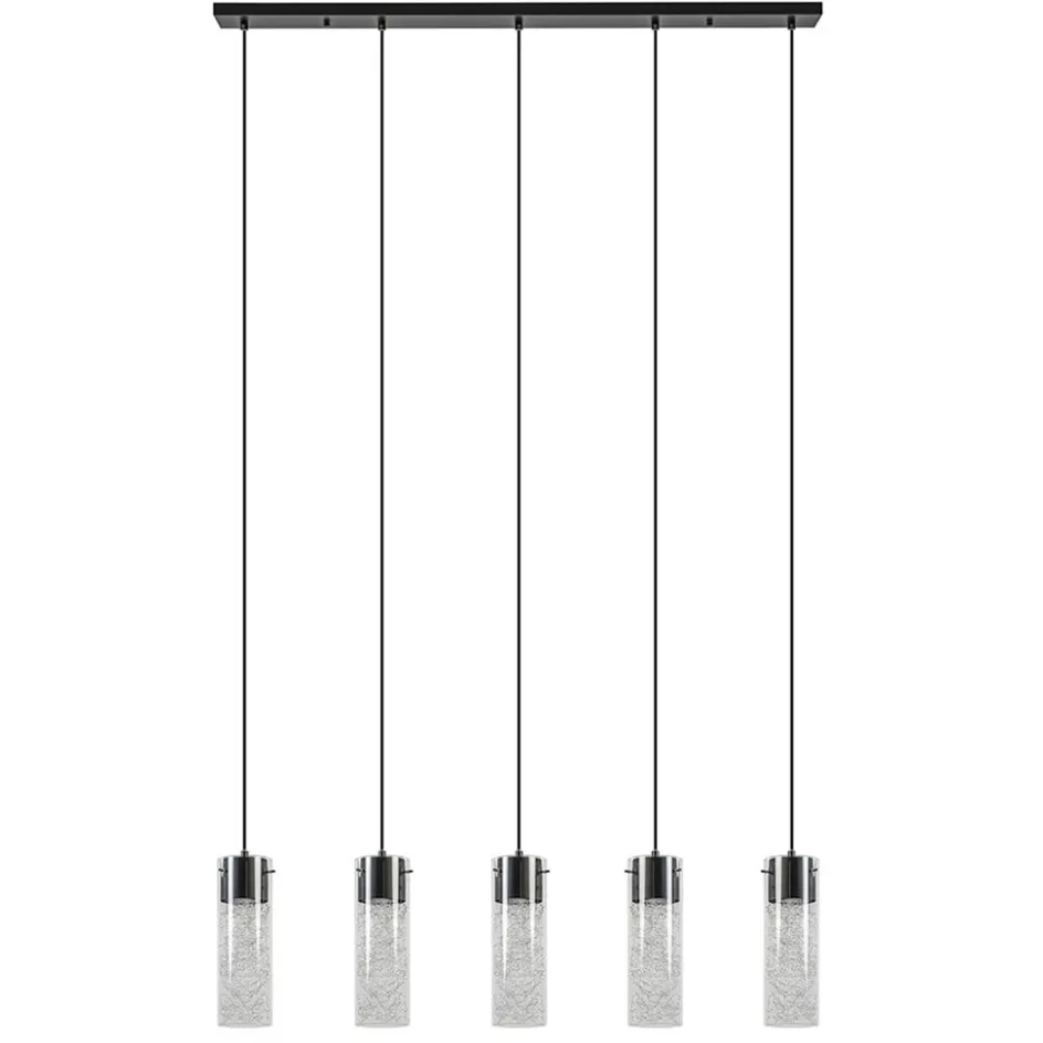 5-Lichts hanglamp cilinder helder glas met zwart>Straluma
