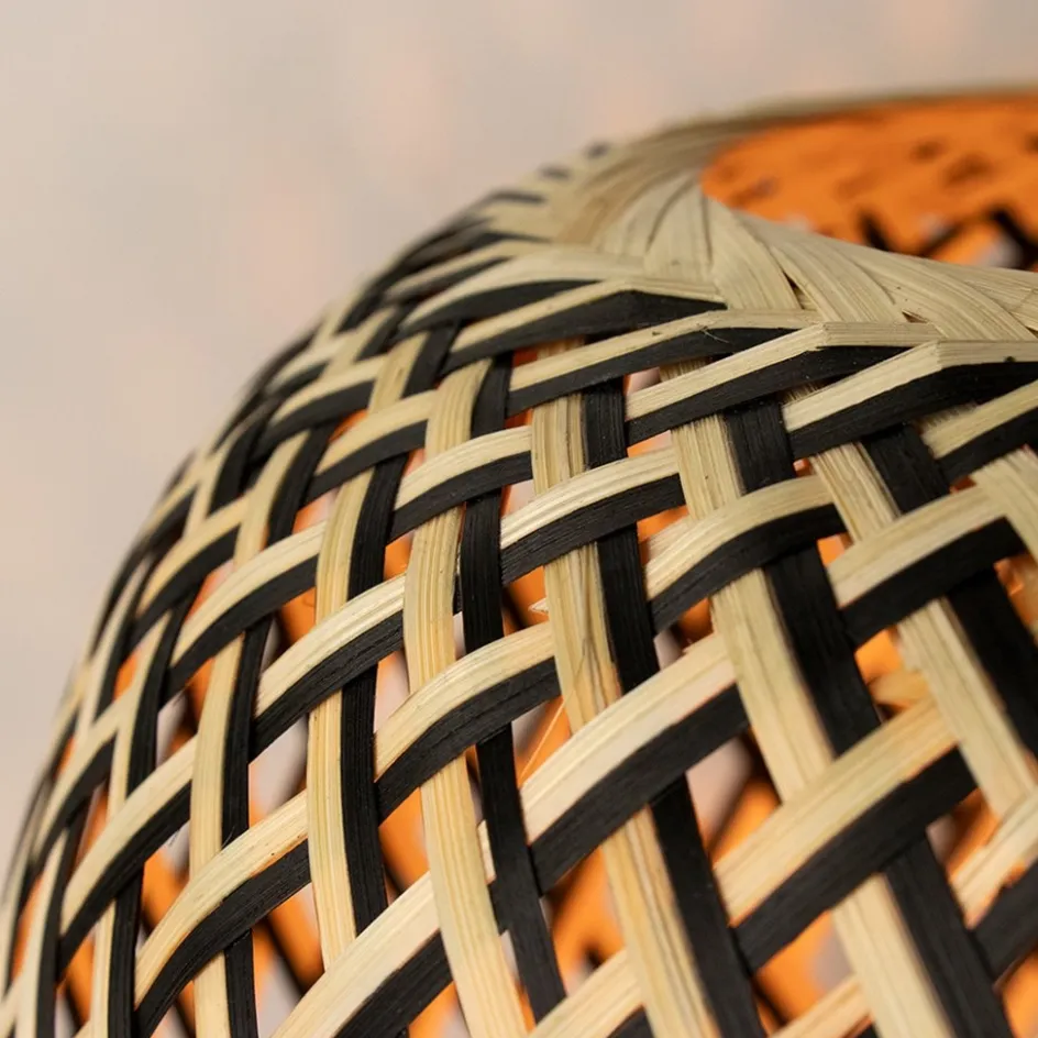 Maak het interieur helemaal af met deze sfeervolle tafellamp. De tafellamp heeft een ronde kap die volledig is gemaakt van bamboe. Doordat er gebruik is gemaakt van naturel en zwart ontstaat er een mooi effect in het vlechtwerk. De ronde bamboe kap wordt ondersteund door een metalen mat zwarte voet die is voorzien van een E27 fitting en een zwart snoer met een lengte van 180 cm. De schakelaar bevindt zich op 40 cm van de voet. De sfeervolle bamboe tafellamp is een leuke toevoeging voor op een dressoir, bijzettafel of het nachtkastje.