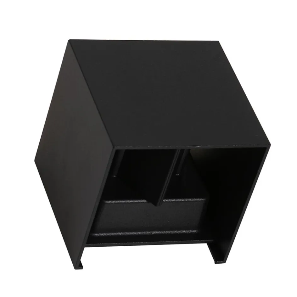 Deze kleine krachtpatser zorgt voor extra sfeer en gezelligheid in uw tuin. De kleine kubus is gemaakt van metaal en uitgevoerd in het mat zwart. De vierkante wandlamp bestaat uit twee delen, de binnen- en de buitenzijde. De buitenzijde is een losse kap die u gemakkelijk over de binnenzijde heen schuift. De binnenzijde is voorzien van de lichtbron. Dit zijn twee LED modules die samen de verlichting verzorgen. De up+down lighter kunt u zelf instellen door de klepjes aan de binnenzijde te buigen. Zo bepaald u zelf aan welke zijde er meer licht moet worden verspreid. De wandlamp is IP54 goedgekeurd en kan dus wel een buitje hebben. Ideaal voor aan de schuur of schutting.