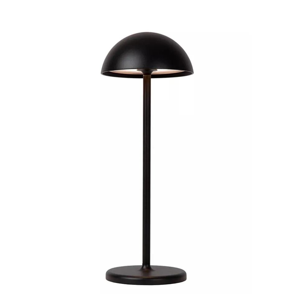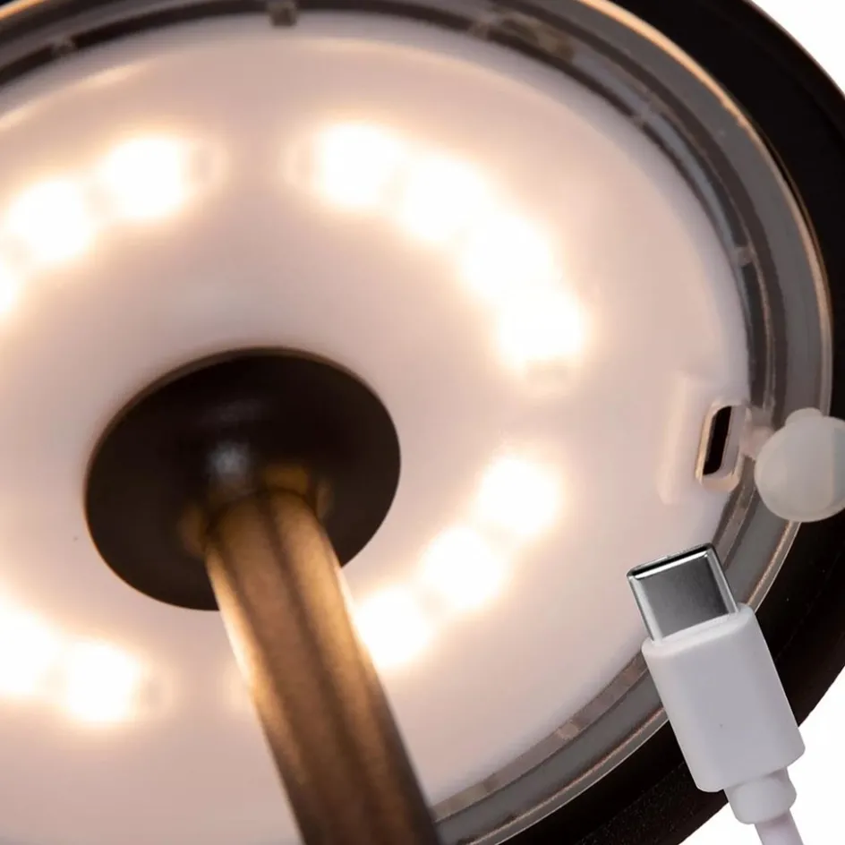 Deze kleine tafellamp is een echte sfeermaker. Doordat de tafellamp op een oplaadbare accu werkt is deze gemakkelijk overal te plaatsen. Deze leuke tafellamp is IP54 goedgekeurd waardoor hij ook buiten kan worden neergezet. Ideaal voor op het balkon of in de tuin. In de ronde kap zit LED verlichting die gemakkelijk te dimmen is met de dimmer op de kap. Deze tafellamp komt in verschillende kleuren.