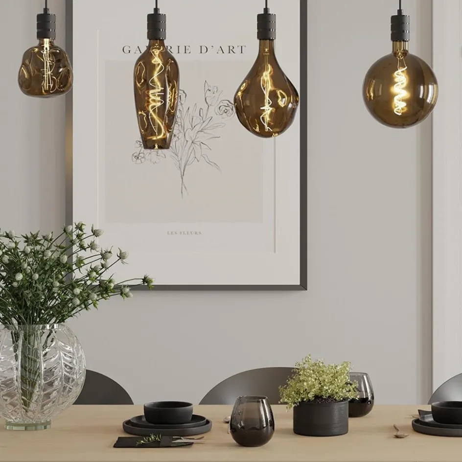 Strak design met een futuristische twist. De Barcelona heeft Natural glas wat zorgt voor een warme uitstraling. De ‘deuken’ in het glas geven de lamp een speels karakter. Combineer deze lichtbron met andere Calex lichtbronnen en creëer een geheel eigen multipendel naar wens.