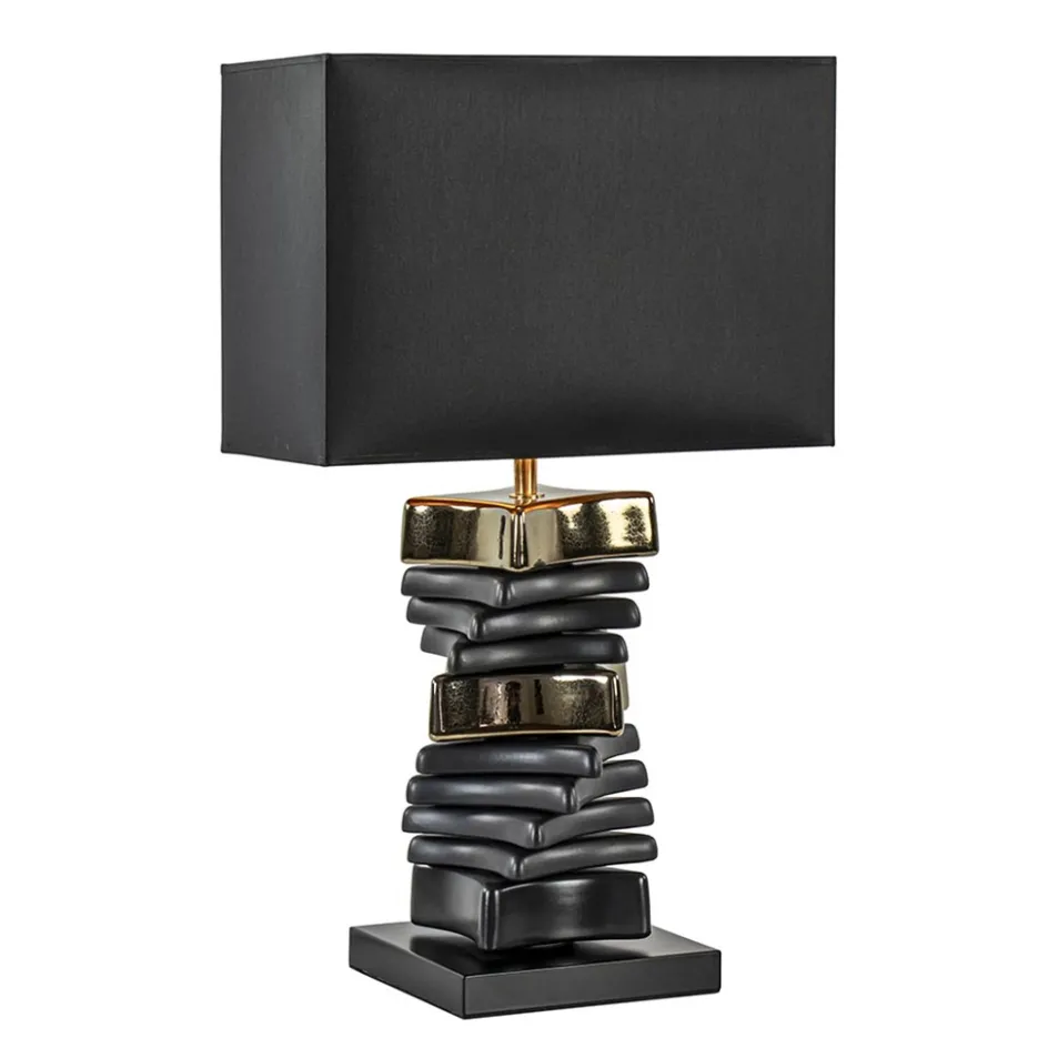 Chique tafellamp zwart met goud en rechthoekige kap>Straluma Clearance