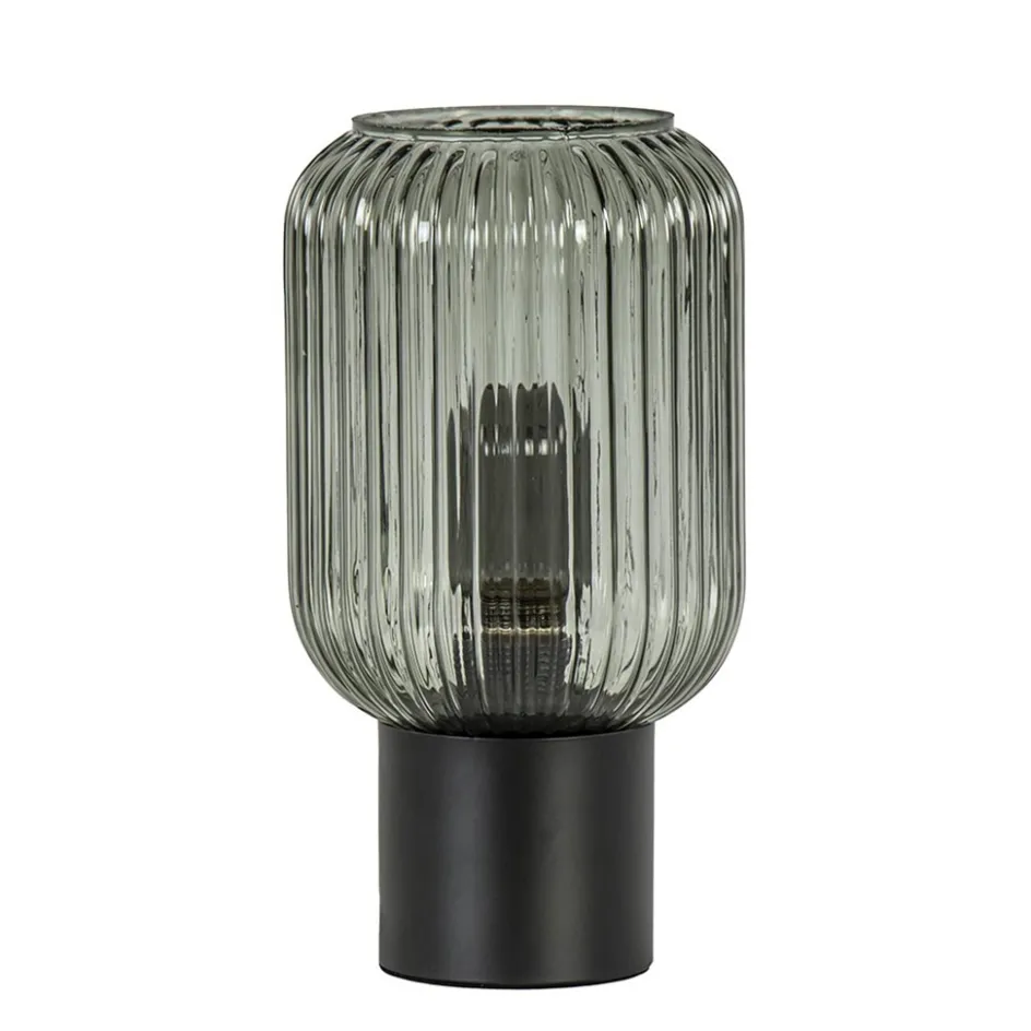 Prachtig op een dressoir, sidetable of zelfs het nachtkastje. Deze tafellamp is voorzien van een mat zwarte voet die is gecombineerd met smoke glas. Dit geeft de tafellamp een luxe, chique uitstraling die mooi is te combineren in diverse woonstijlen. De voet heeft een snoer met een lengte van 180 cm, de schakelaar zit op 30 cm van de lamp. De kleine tafellamp wordt geleverd zonder lichtbron (E27).