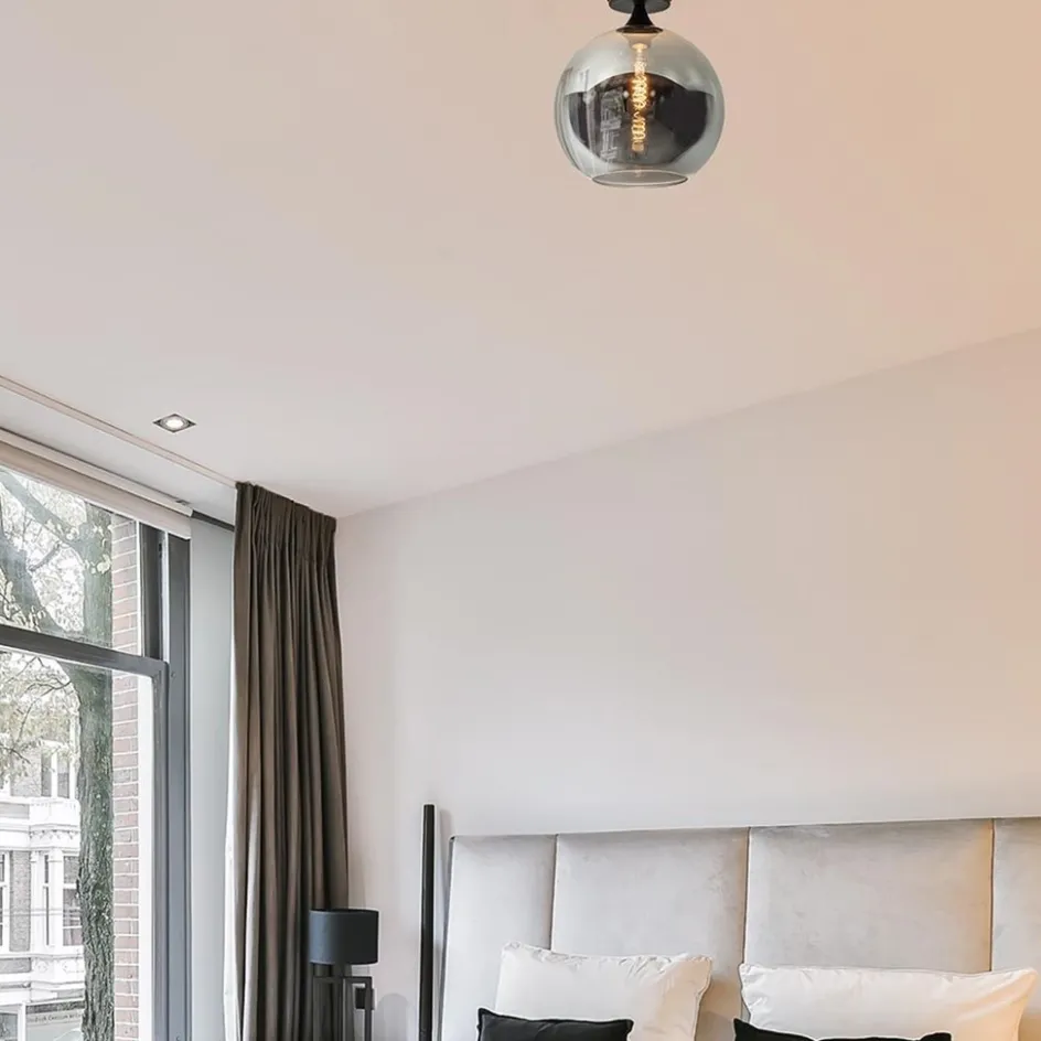 Globe plafondlamp zwart met smoke/titanium glas 30 cm>Straluma Outlet