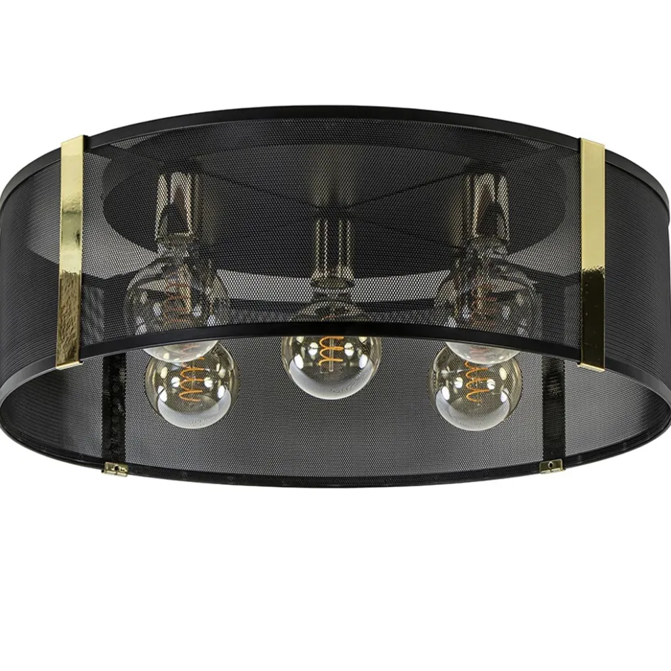 Grote ronde plafondlamp zwart gaas met goud>Straluma Clearance