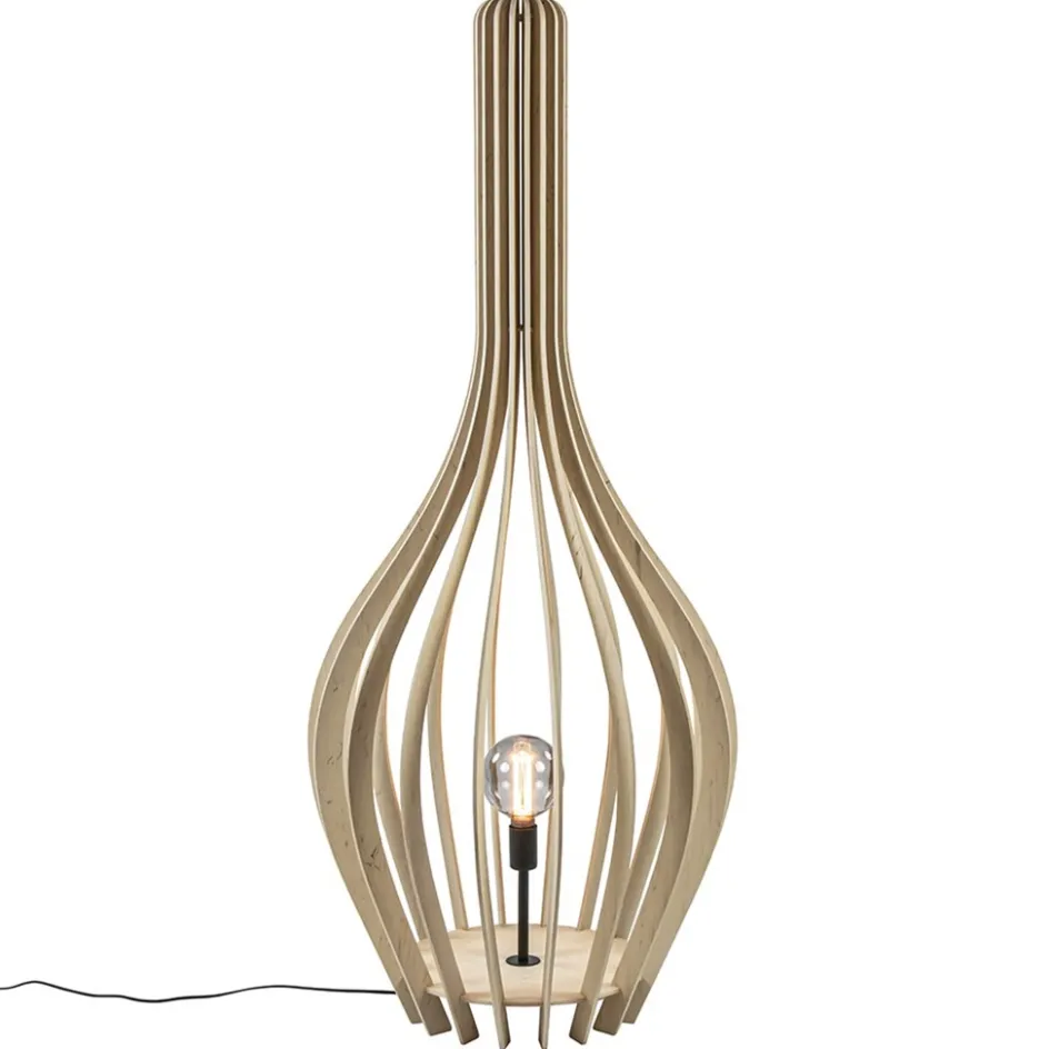 Grote vloerlamp kegel naturel hout met zwart>Straluma Outlet