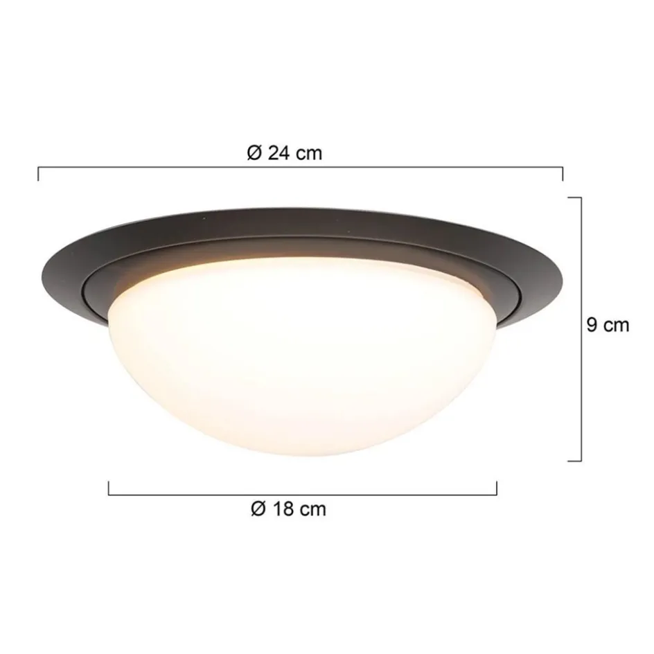Kleine LED plafondlamp zwart met wit glas IP44>Straluma Discount