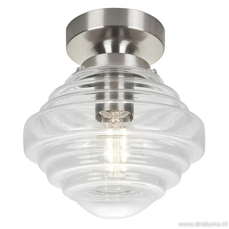 Wat een schatje deze kleine stijlvolle plafonnière in een combinatie van helder glas met staal. Deze uitvoering is uitermate geschikt voor uw keuken, hal of toilet. De kleine plafonniere heeft een romantische en klassieke uitstraling, waardoor u jarenlang plezier heeft van deze glazen plafondlamp.