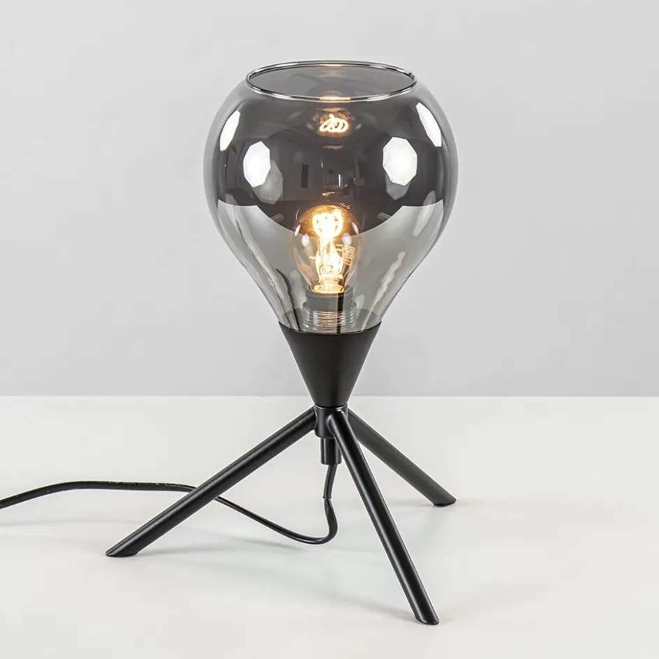 Kleine tafellamp driepoot met titanium glas>Straluma New