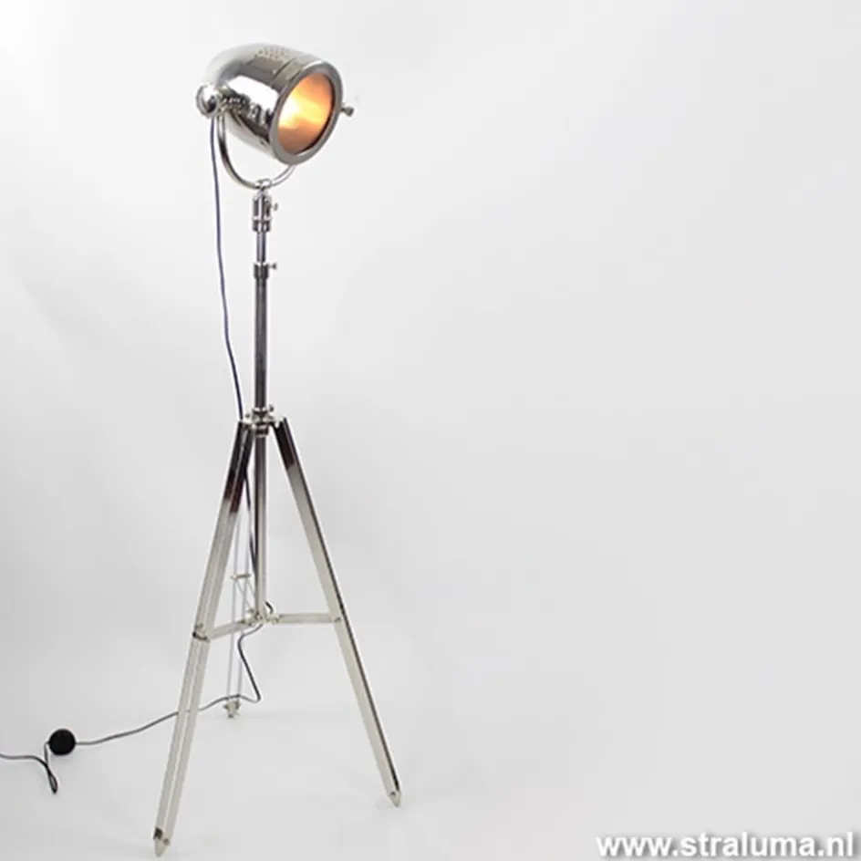 Prachtige vloerlamp driepoot genaamd Taylor. Deze staande lamp met spot is verstelbaar, zowel in hoogte als kantelbaar. Het klassieke model van deze vloerlamp Taylor is zeer trendy door de zilveren uitvoering. Toepasbaar in diverse woonruimtes zoals de woonkamer of slaapkamer maar vooral prachtig te combineren met donkere kleuren. De staande lamp Taylor is een echte blikvanger in uw interieur. Ook verkrijgbaar in een tafelmodel.