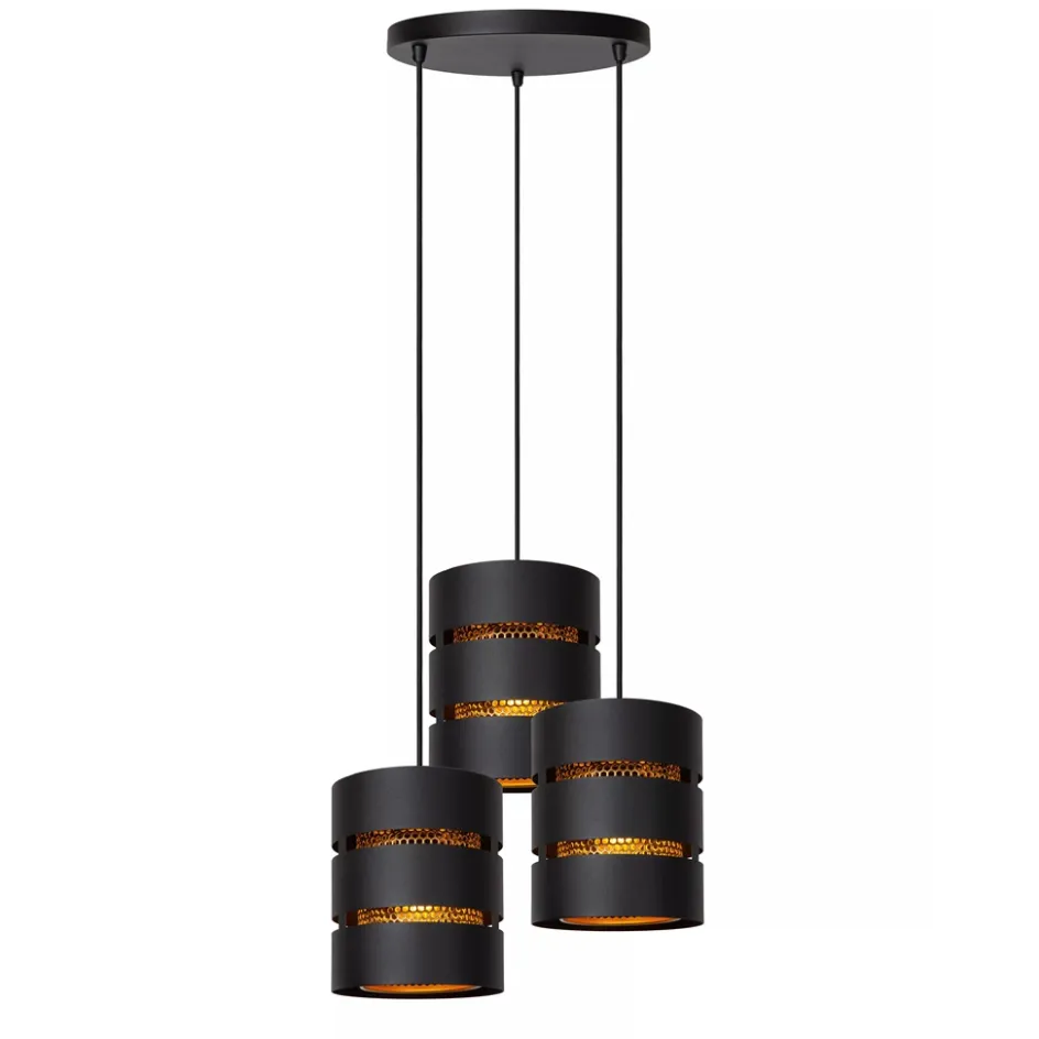 Ronde 3-lichts hanglamp zwart met goud>Straluma Hot