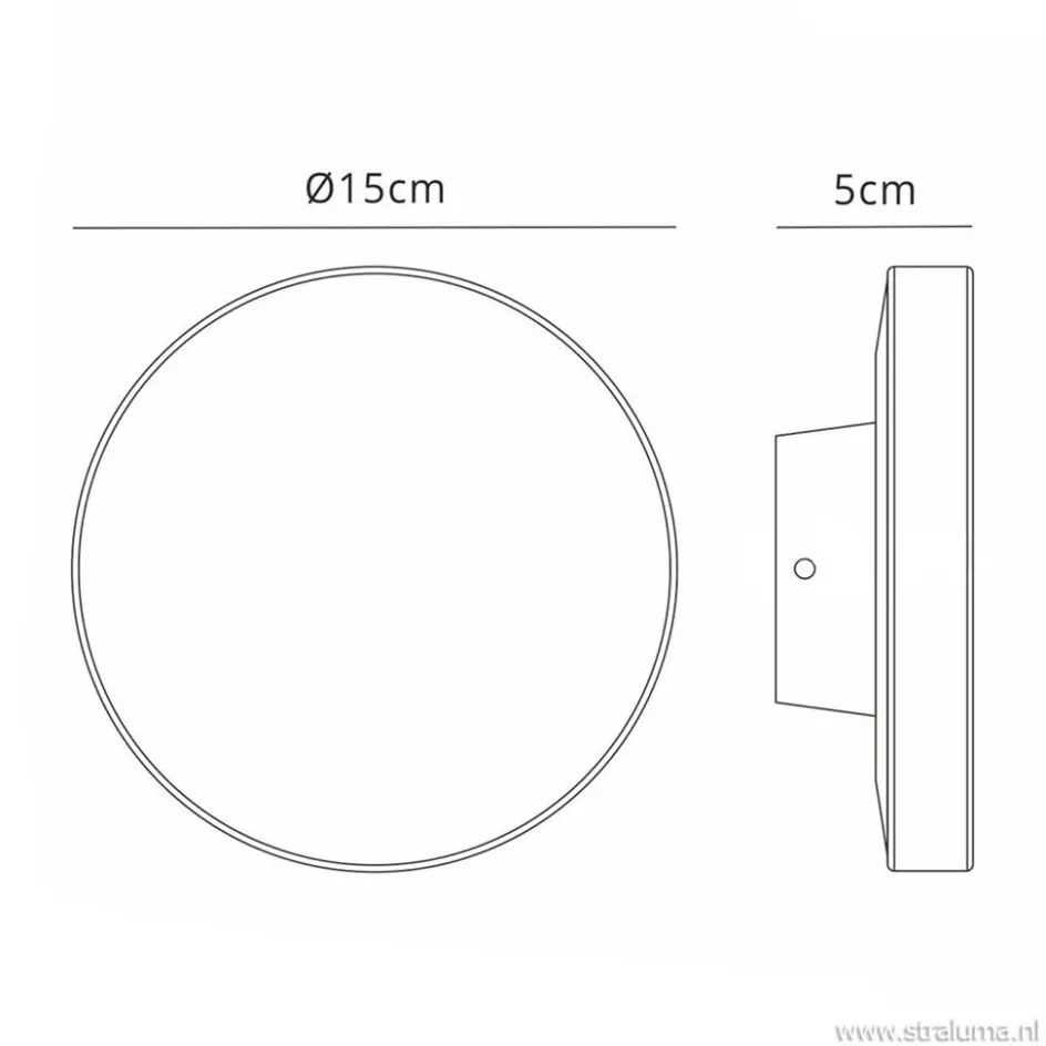 Een kleine sfeermaker met een groot effect. Deze ronde platte buiten wandlamp kan worden geplaatst in de tuin op de schutting of muur. De aluminium buitenlamp is voorzien van geïntegreerd LED wat een indirecte verlichting geeft. Het LED schijnt op de muur en zorgt voor een sfeervolle lichtverspreiding en een mooie effect op de muur of schutting. De moderne wandlamp heeft een strakke vormgeving en past dan ook mooi in een strak vormgegeven tuin. De ronde buitenlamp is IP54 goedgekeurd en weerbestendig van -10° tot +45°C.