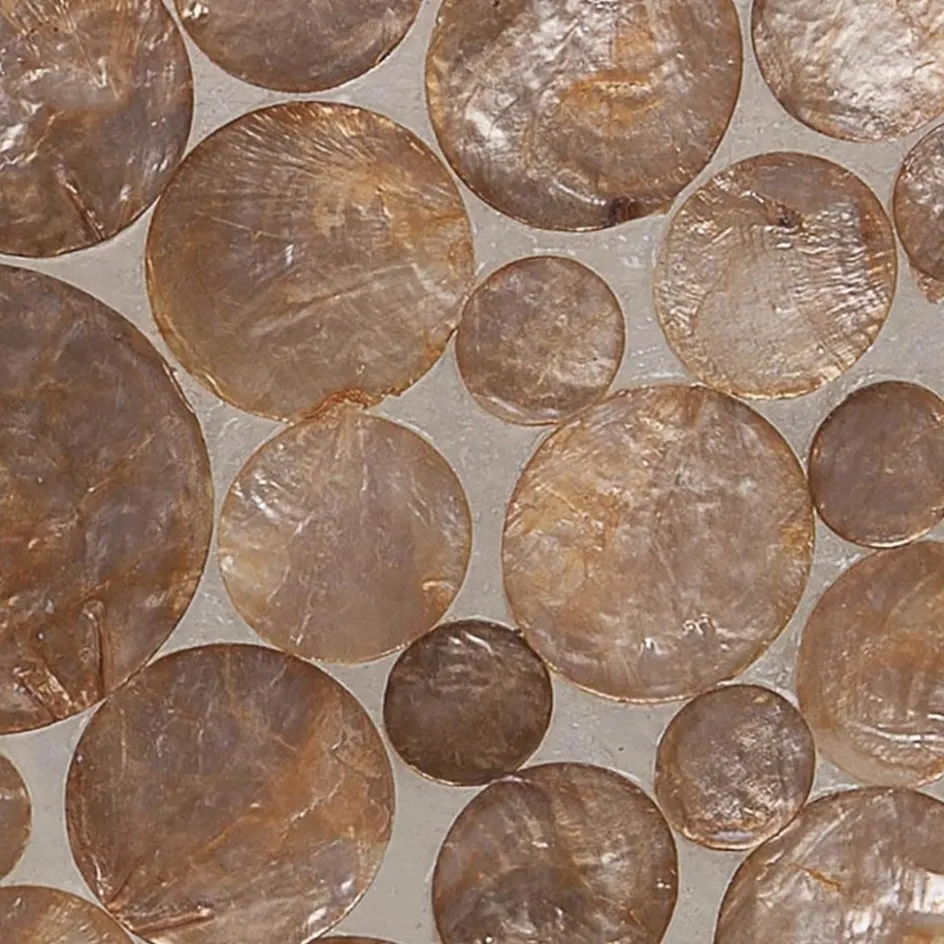 Met deze leuke decoratieve tafellamp haalt u het strandgevoel een beetje naar binnen. De cilindervormige tafellamp is gemaakt uit een fiberglas mal die is voorzien van capiz schelpen in diverse groottes. De schelpen hebben een gouden kleur die het interieur voorzien van warmte en gezelligheid, iets dat wordt versterkt wanneer de lamp is ingeschakeld. De kap van de schelpen tafellamp wordt ondersteund door een zwarte voet die is voorzien van een zwart snoer van 175 cm, met een schakelaar op 55 cm van de lamp. De schelpen tafellamp cilinder goud/bruin wordt geleverd zonder lichtbron (E14).