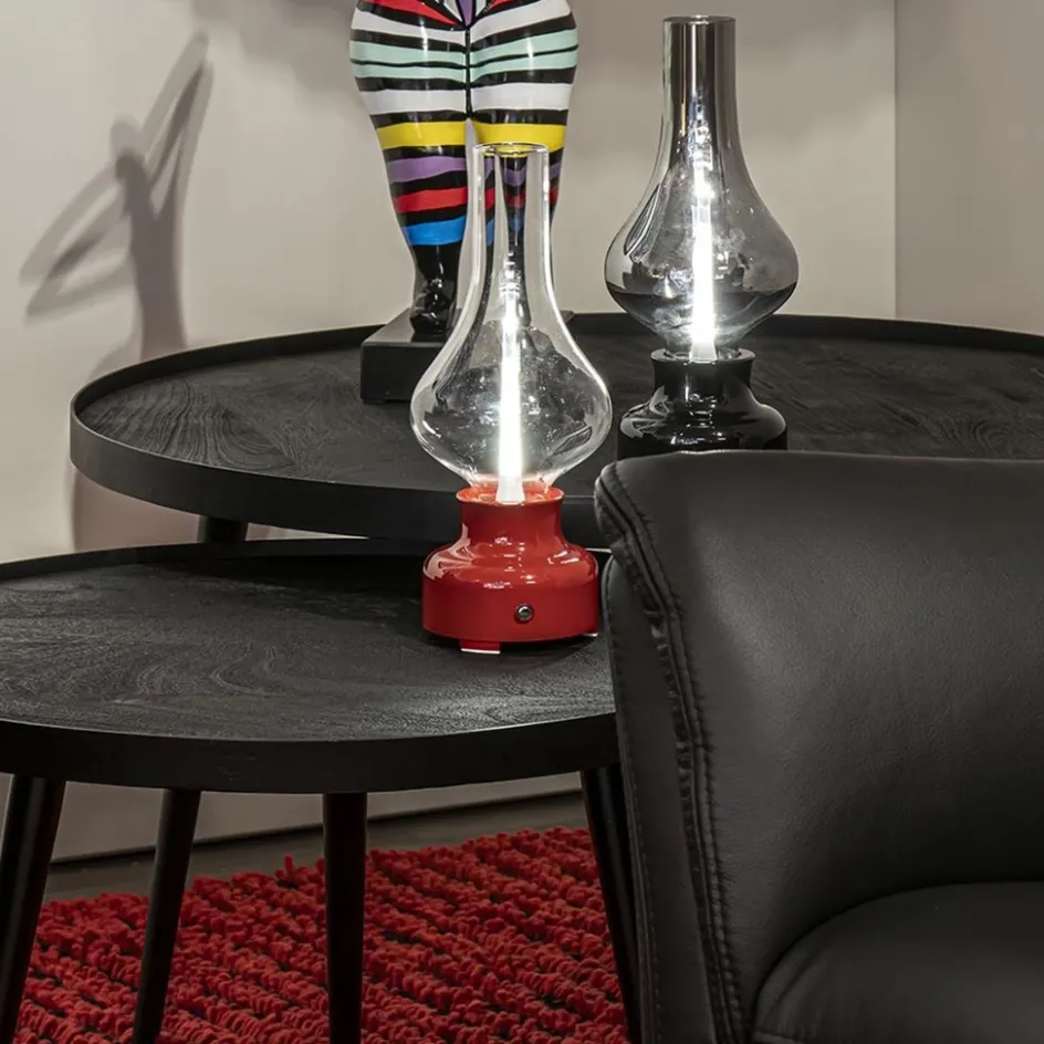 Grappige retro tafellamp in een modern jasje. Deze leuke tafellamp heeft de vorm van een ouderwetse olielamp. De tafellamp heeft een accu die oplaadbaar is met de bijgeleverde kabel. Hierdoor is de handige lamp overal neer te zetten. De tafellamp is in 3 standen te dimmen met touchdimmer op het armatuur. Deze leukerd is verkrijgbaar in verschillende kleuren.