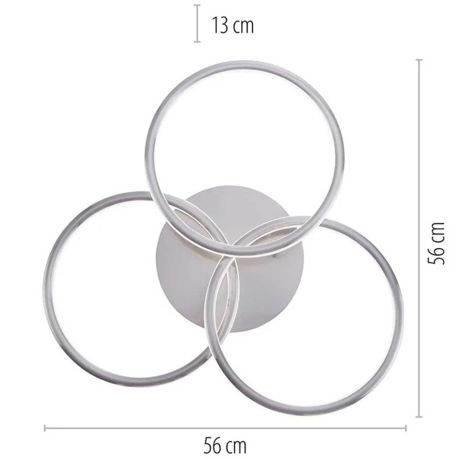Deze plafondlamp bestaat uit drie overlappende ringen. De ringen worden zowel aan de binnenkant van de ring als aan de buitenkant van de ring verlicht. De elegante plafondlamp past perfect in het moderne huishouden. Deze plafondlamp is zowel in lichtsterkte als in lichtwarmte dimbaar. Hij is eenvoudig te bedienen met de bijgeleverde afstandsbediening en de app. De plafondlamp kan geïntegreerd worden in bestaande smart systemen met een Zigbee standaard.