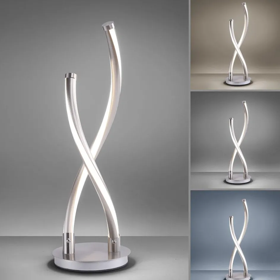De gedraaide lichtbalken van deze mooie tafellamp verfraaien de ruimte met aantrekkelijke vormen. De lamp past perfect in een moderne woonstijl. Deze tafellamp is zowel in lichtsterkte als in lichtwarmte dimbaar. Hij is eenvoudig te bedienen met de bijgeleverde afstandsbediening en de app. De tafellamp kan geïntegreerd worden in bestaande smart systemen met een Zigbee standaard. Perfect voor op een dressoir, kast of het nachtkastje.