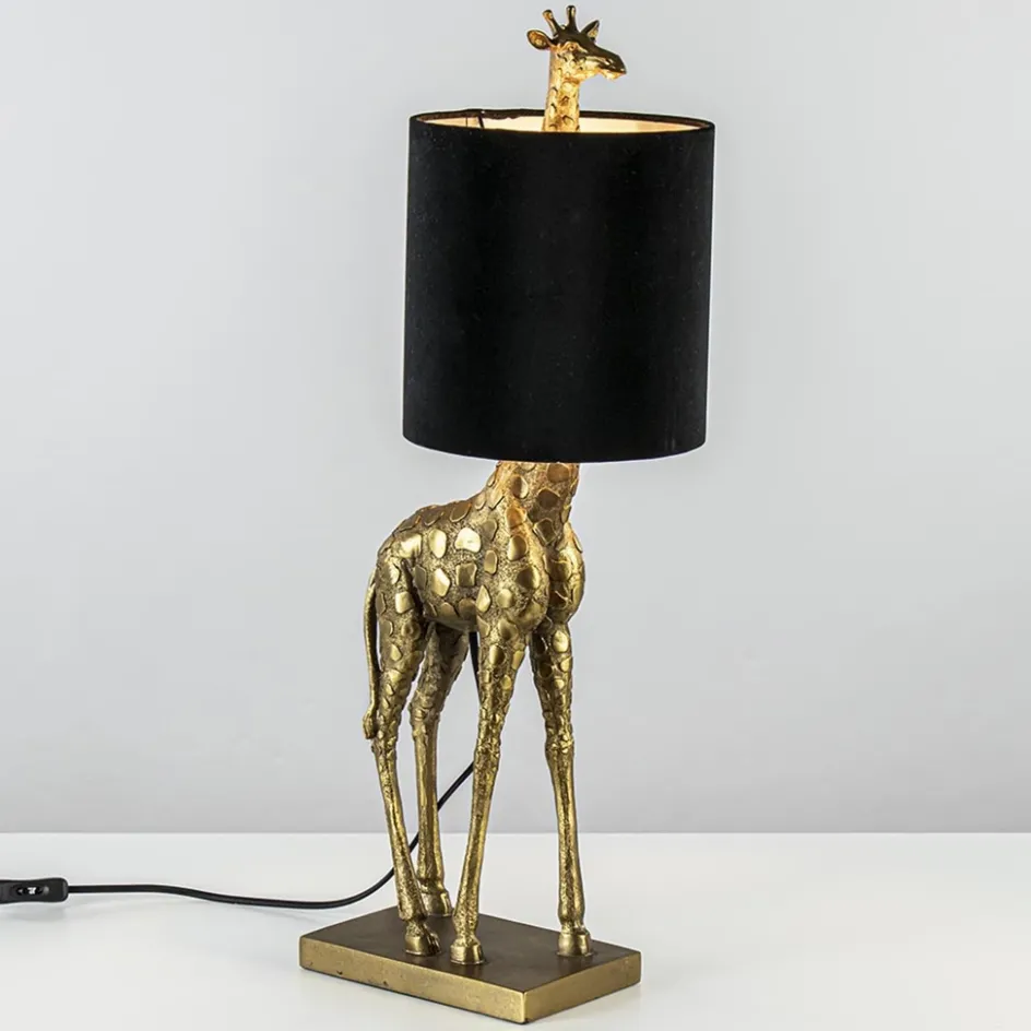 Tafellamp Giraffe groot antiek brons met velvet zwarte kap>Straluma Hot