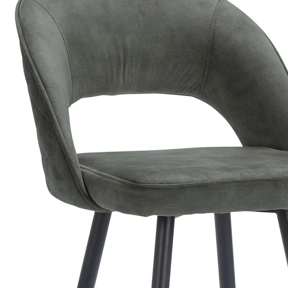 Chique, trendy en comfortabel. Deze fijne barkruk zorgt met een zacht zitkussen voor een fijne zit die wordt versterkt door de rugleuning. Deze is van onder open voor een mooi open effect. De zitting en de rugleuning zijn volledig van een velourse stof wat een chique luxe uitstraling geeft. Het stiksel op de rug geeft hier nog extra allure aan. De barstoel is verder afgewerkt met zwarte pootjes met een extra voetensteun.