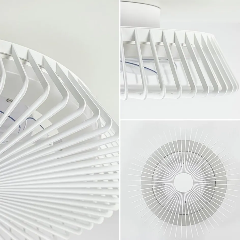 Een moderne design plafondventilator met LED zoals we deze nog niet eerder hebben gezien. De ronde ventilator oogt meer als een plafondlamp dan een ventilator maar heeft wel beide functies in één. De architectonische kap geeft de plafondventilator een design look die door de grootte van 63 cm doorsnede een mooie eye-catcher is. De moderne plafondventilator met lamp is voorzien van een geïntegreerd LED met een aantal functies. Zo kunt u de kleurtemperatuur kiezen tussen de 2700 en 5000 Kelvin en kunt u gemakkelijk de lamp dimmen. Dit bediend u allemaal gemakkelijk en snel met de meegeleverde afstandsbediening of via uw mobiele telefoon en app. Deze verbindt u via Bluetooth met de lamp zodat u vanaf uw bank of bed snel de gewenste instelling kunt maken. Een ideale plafondlamp en ventilator in één die ook nog eens een strakke design uitstraling heeft.