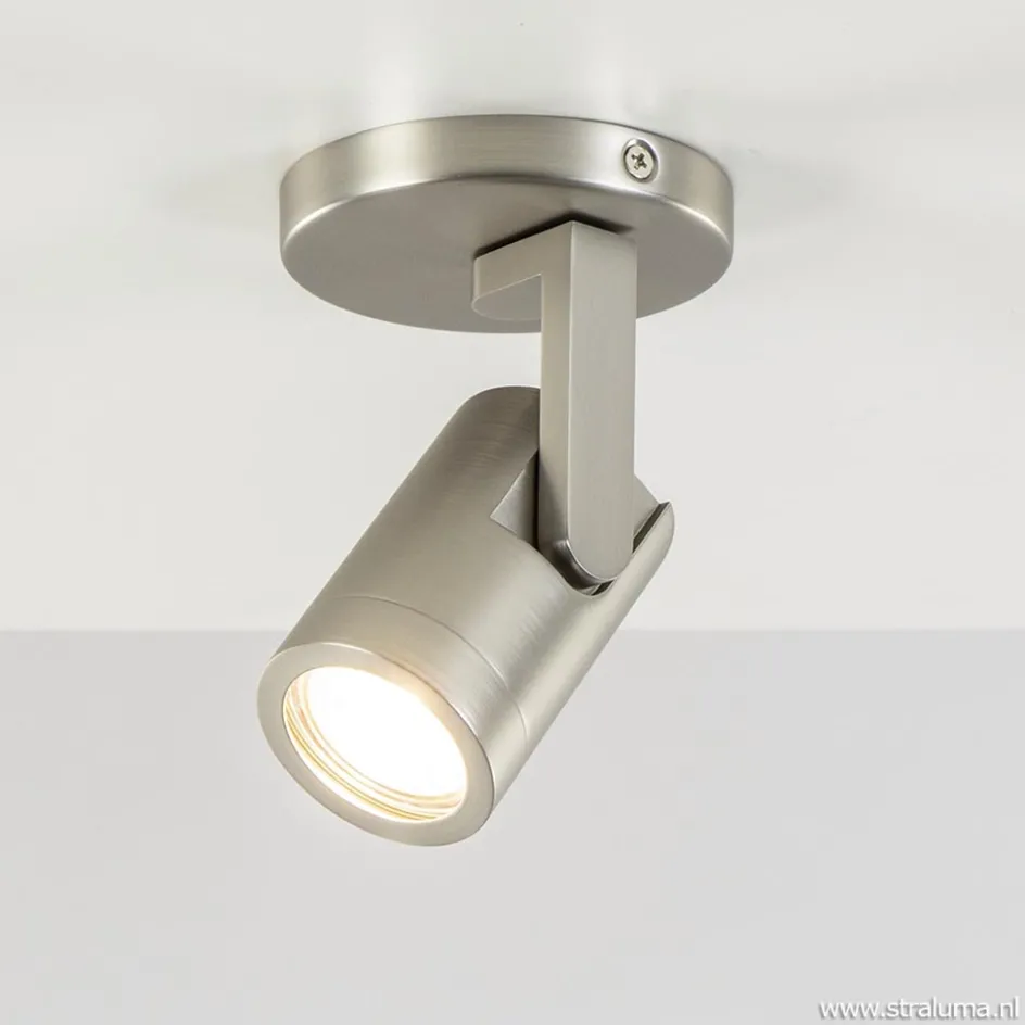 Geschikt voor diverse doeleinden als het uitlichten van een donkere hoek, kunstobject of schilderij, maar ook prima toepasbaar in een toilet of hal. Deze plafondspot heeft een strakke en moderne vormgeving en is uitgevoerd in mat nikkel. Het spotje is zowel te kantelen als te draaien zodat deze gemakkelijk kan worden versteld. De nikkel spot is voorzien van een afneembare ring die er afgedraaid kan worden om zo de lichtbron GU10) te plaatsen, deze is exclusief. Door middel van een externe dimmer (exclusief) zou de spot ook te dimmen zijn.