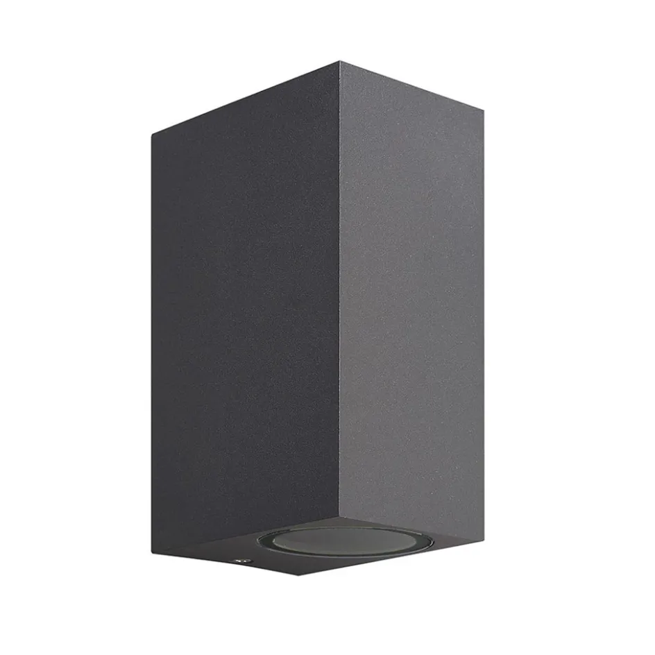 Maak het genieten van uw tuin nu nog fijner met deze sfeervolle wandspot. De antraciete wandlamp is gemaakt van aluminium en heeft een strak en minimalistisch design. Het mooie aan de buiten wandlamp, is dat deze is voorzien van een up- en downlighter wat een sfeervol zandloper effect creëert op de muur of schutting. De lichtbronnen (2x GU10) zijn exclusief zodat u zelf kunt kiezen wat voor warmte en sfeer u wenst in uw tuin. Het antraciete buitenspotje is IP54 goedgekeurd en weerbestendig -10° tot +45°C.