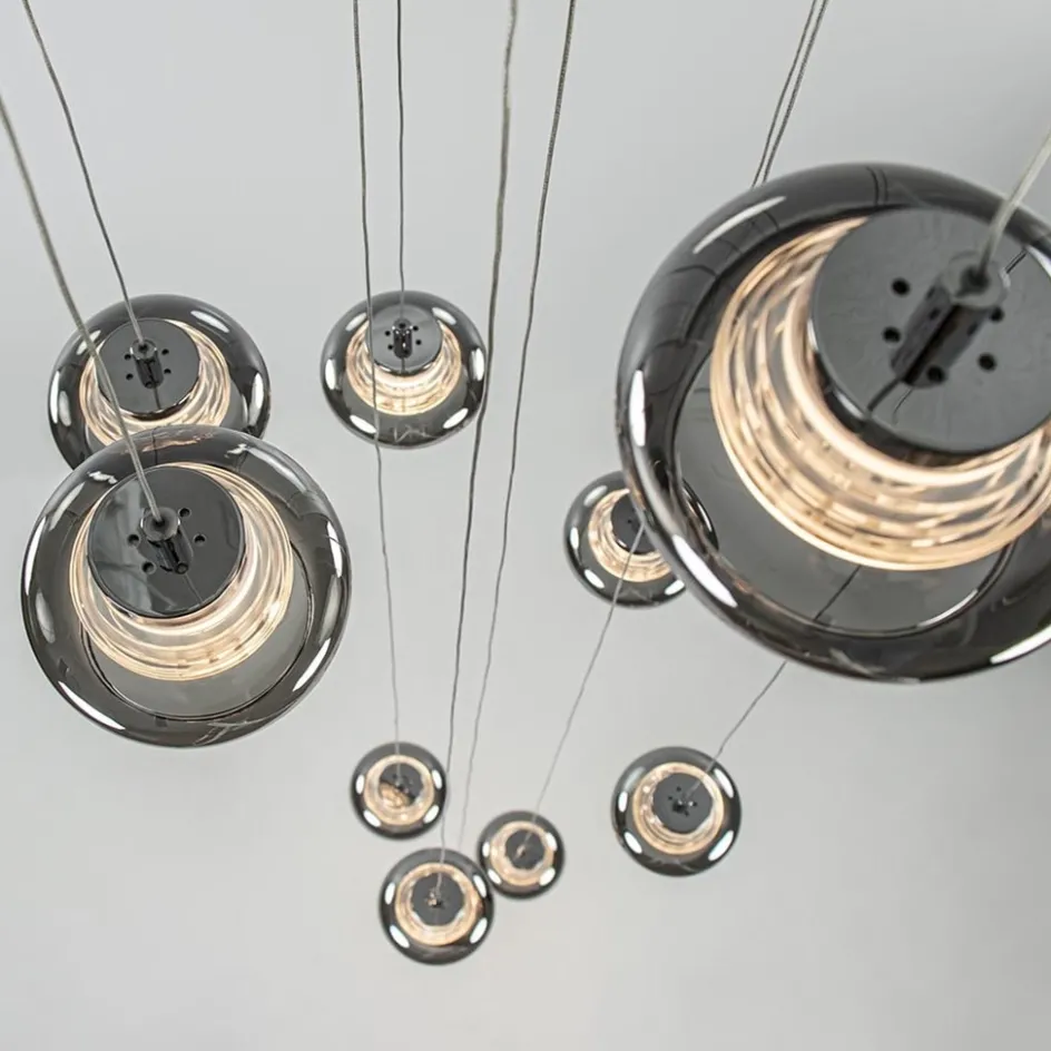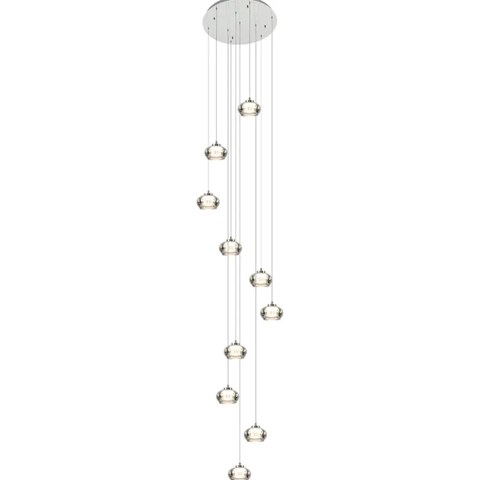 Deze 10-lichts glazen hanglamp vormt een mooie eye-catcher in een vide. De 10 smoke glazen kappen zijn mooi verdeeld over een hoogte van 3 meter en lopen in een spiraalvorm van boven naar beneden. De LED videlamp is voorzien van chromen details en smoke glazen kappen die de lamp een luxe uitstraling geven. Het heldere binnenglas zorgt voor een mooi effect in het smoke glas en tevens voor een fijne lichtverspreiding. Met 2700 Kelvin geeft de LED videlamp een sfeervolle warm-witte verlichting. Ideaal aan de moderne videlamp is verder, dat deze is voorzien van een 3-standen functie. Dit houdt in dat de verlichting in 3 standen is te dimmen d.m.v de gewone wandschakelaar. Per keer dat u de lamp aanzet, dimt deze een stap verder. Zo kiest u gemakkelijk en snel tussen de 3 standen en creëert u de ideale sfeer voor het juiste moment. De videlamp wordt met een grote ronde plaat aan het plafond bevestigd. De combinatie van het glas en het chroom maakt de videlamp geschikt voor divserse woonstijlen.