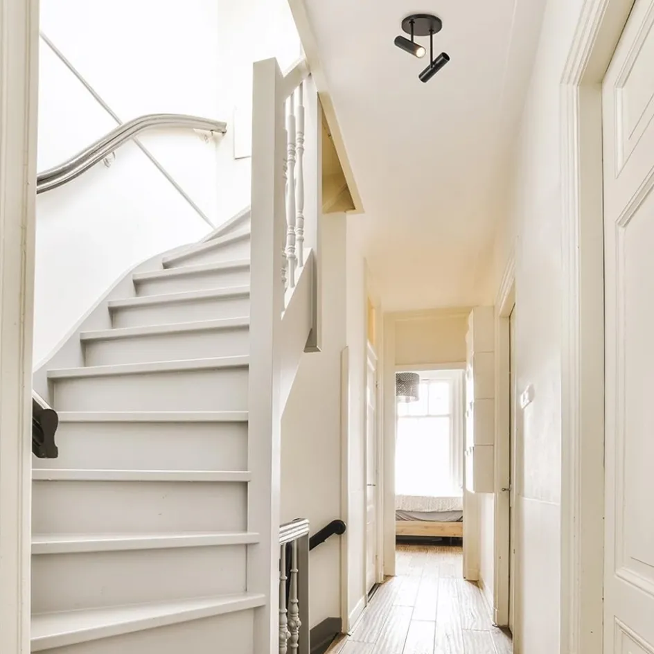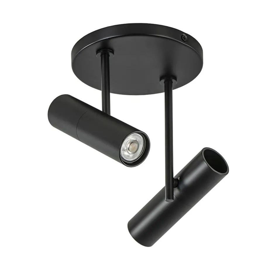 Ideaal voor in de hal, slaapkamer of woonkamer. Deze ronde 2-lichts opbouwspot heeft een strak design en is voorzien van smalle cilinder-vormige spots. Deze zijn te verstellen door ze te draaien en/of te kantelen. Ideaal om de ruimte goed uit te lichten. De moderne opbouwspot is gemaakt van metaal en uitgevoerd in het mat zwart. De cilinder kan worden opengedraaid zodat de lichtbron gemakkelijk kan worden geplaatst.