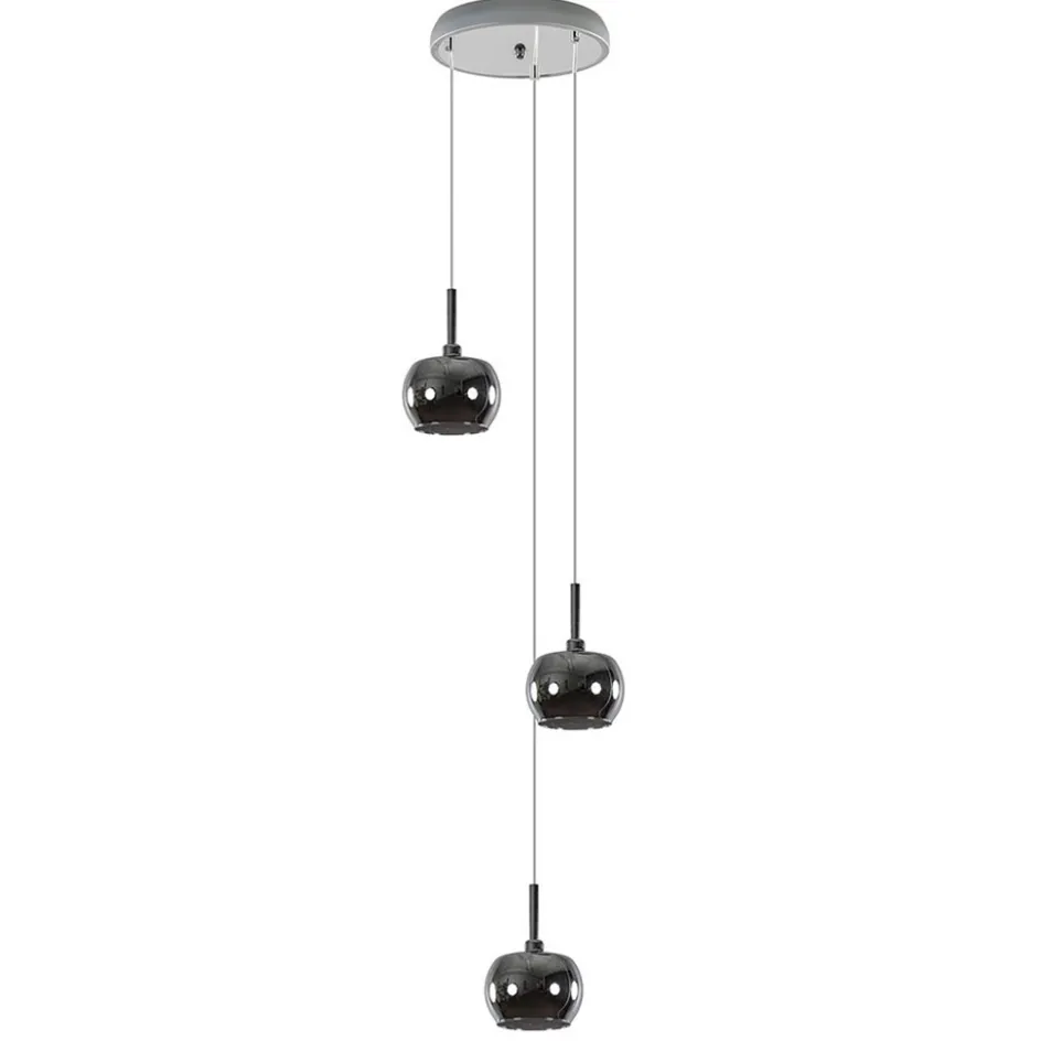 3-Lichts hanglamp chroom met smokey glazen kappen>Straluma Best