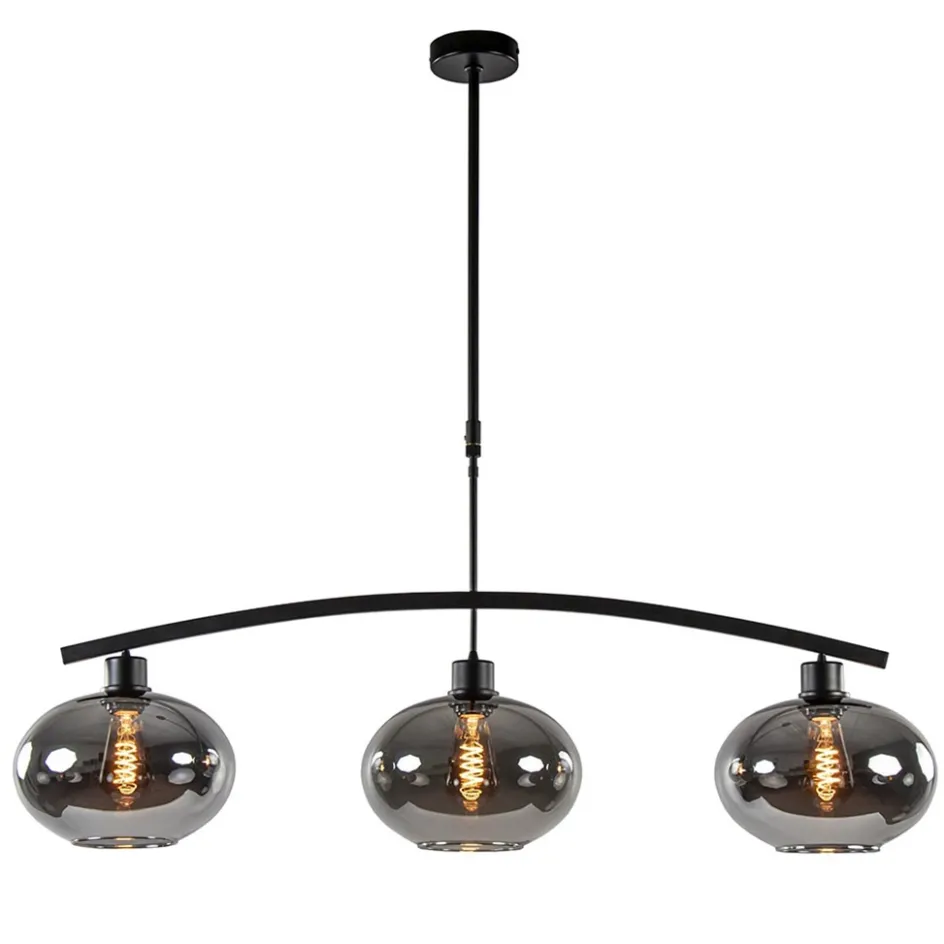 3-Lichts retro hanglamp zwart met smoke glas>Straluma