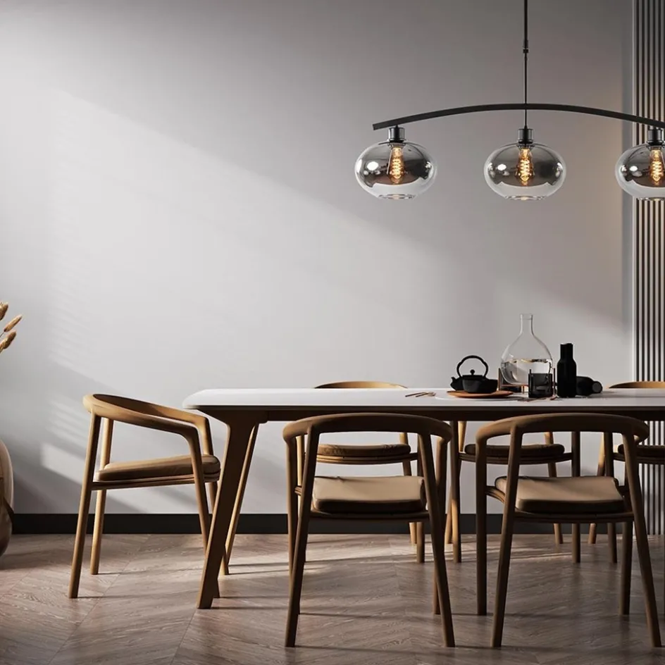 Retro, klassiek en trendy komen samen in deze 3-lichts hanglamp. Het design heeft de retro look en feel terwijl de smoke glazen kappen de chique trendy uitstraling geven. De hanglamp is in hoogte te verstellen door het schroefje op het armatuur los te draaien en het armatuur iets uit te trekken. De hoogte varieert tussen de 95 en 135 cm en maakt de hanglamp prima geschikt voor boven een eettafel. De 3-lichts hanglamp met smoke glazen kappen is dimbaar middels een externe dimmer (exclusief) en wordt geleverd exclusief lichtbronnen.