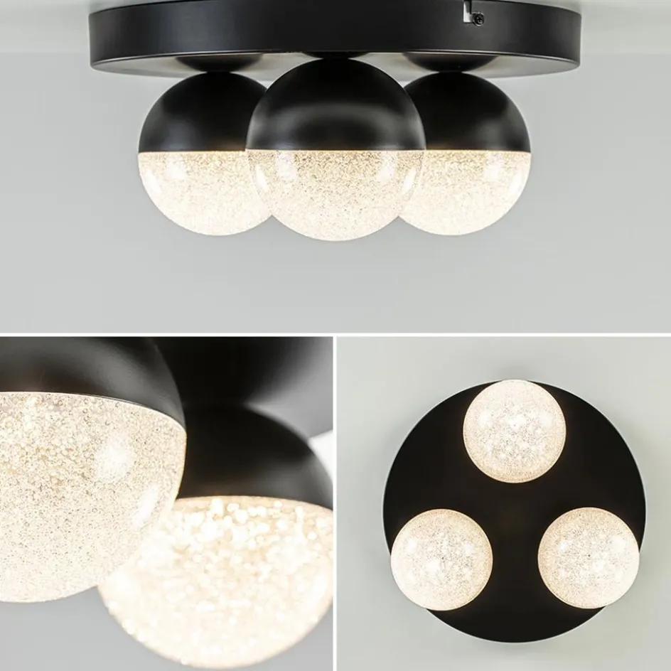 Deze 3-lichts plafondlamp zorgt voor een fijne sfeer voor ieder moment. De LED plafondlamp is voorzien van een 3-standen dimfunctie die gemakkelijk via een gewone wandschakelaar is te bedienen. Zo schakelt u snel tussen de 3 verschillende standen door de schakelaar aan en uit te schakelen. Ideaal voor in een keuken, woonkamer of slaapkamer. De zwarte plafondlamp bestaat uit 3 bollen die half met zwart en half met diamant zand zijn afgewerkt. Het diamant zand zorgt voor een mooi effect en zorgt dat er niet direct in de lichtbron kan worden gekeken. De moderne 3-lichts LED plafondlamp geeft met 2700 Kelvin een sfeervolle warm witte verlichting.