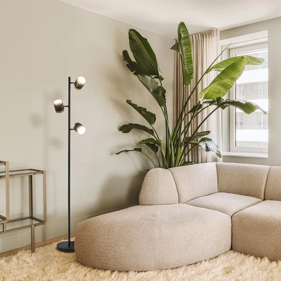 3-Lichts vloerlamp zwart/goud met dimbare spots>Straluma Hot