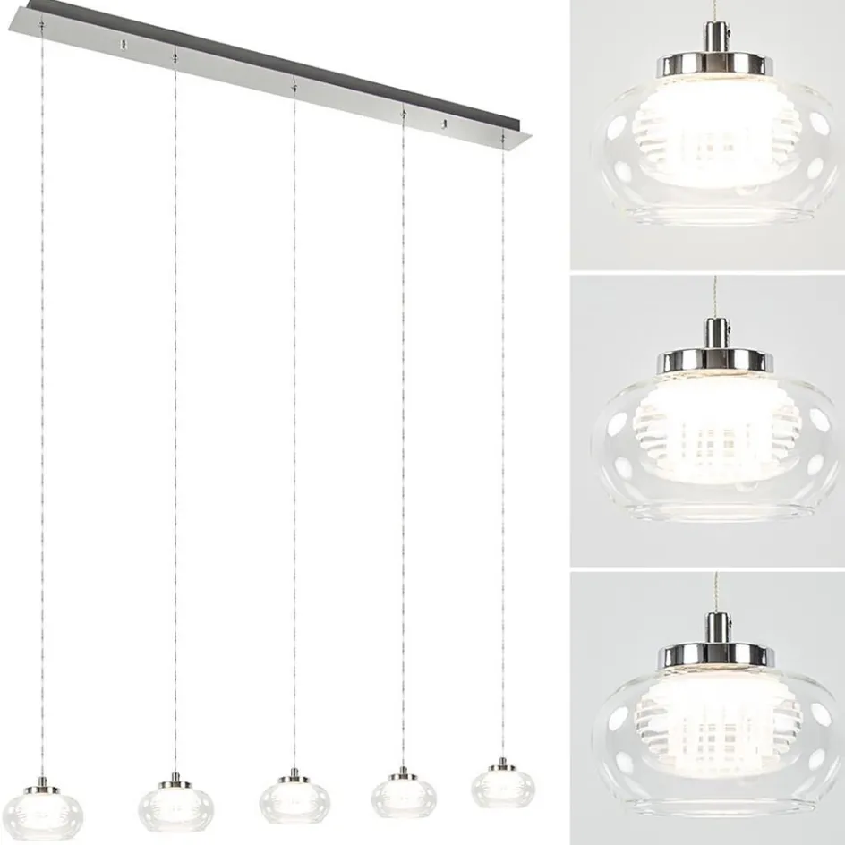 5-Lichts hanglamp chroom met helder glas en dimbaar LED>Straluma Outlet