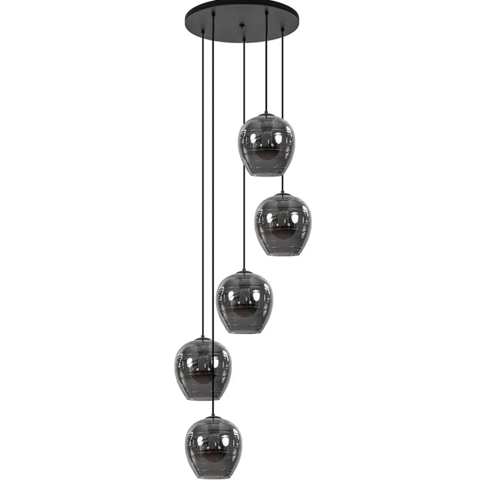 5-Lichts ronde hanglamp zwart met smokey glas>Straluma Best