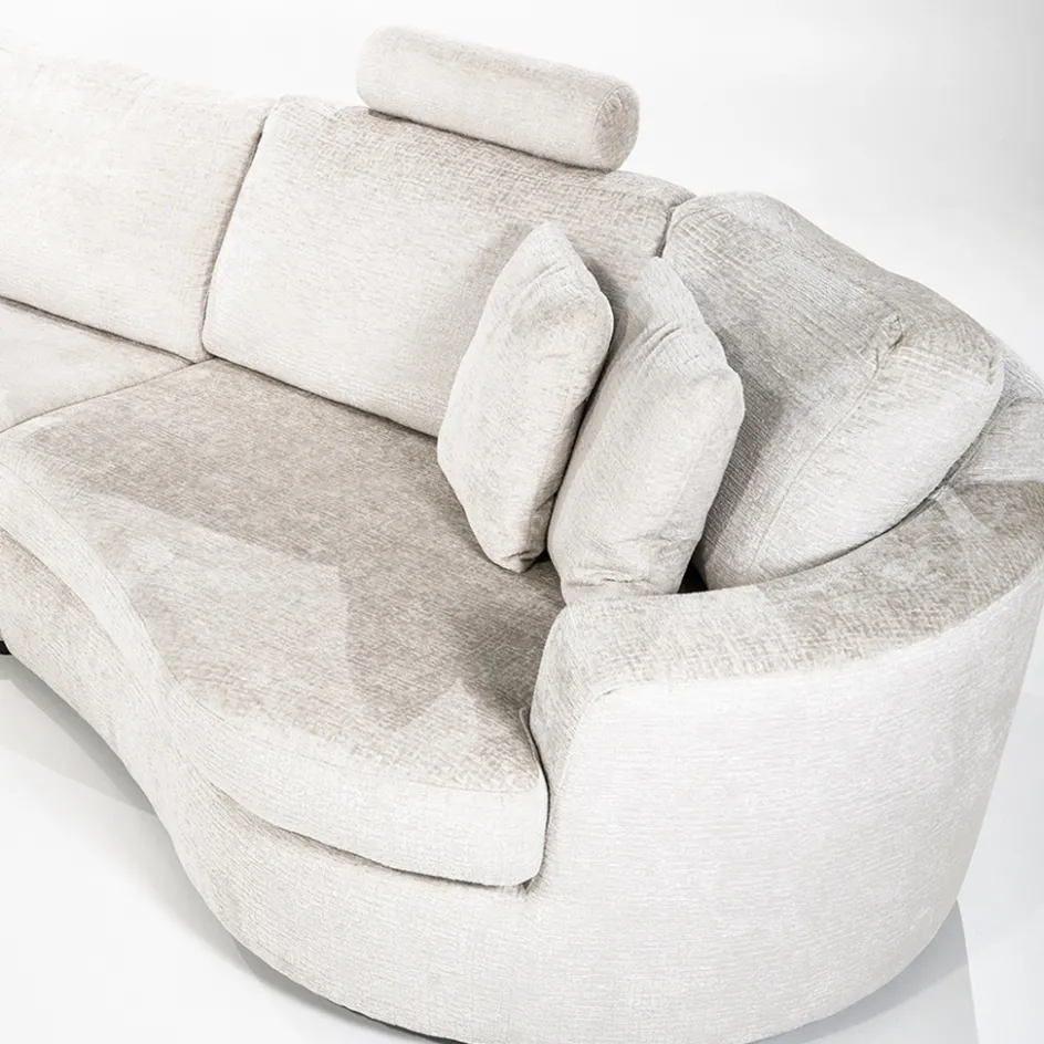 Helemaal passend in de huidige woontrends, deze organische bank. Soof is volledig van stof en uitgevoerd in de kleur fusion shell, oftewel gebroken wit. Door zijn ronde vormen heeft de bank een luchtige uitstraling die de ruimte complementeert. Soof is uit te breiden met diverse kussens als een nek of armsteun om het zitcomfort nog meer te verhogen.