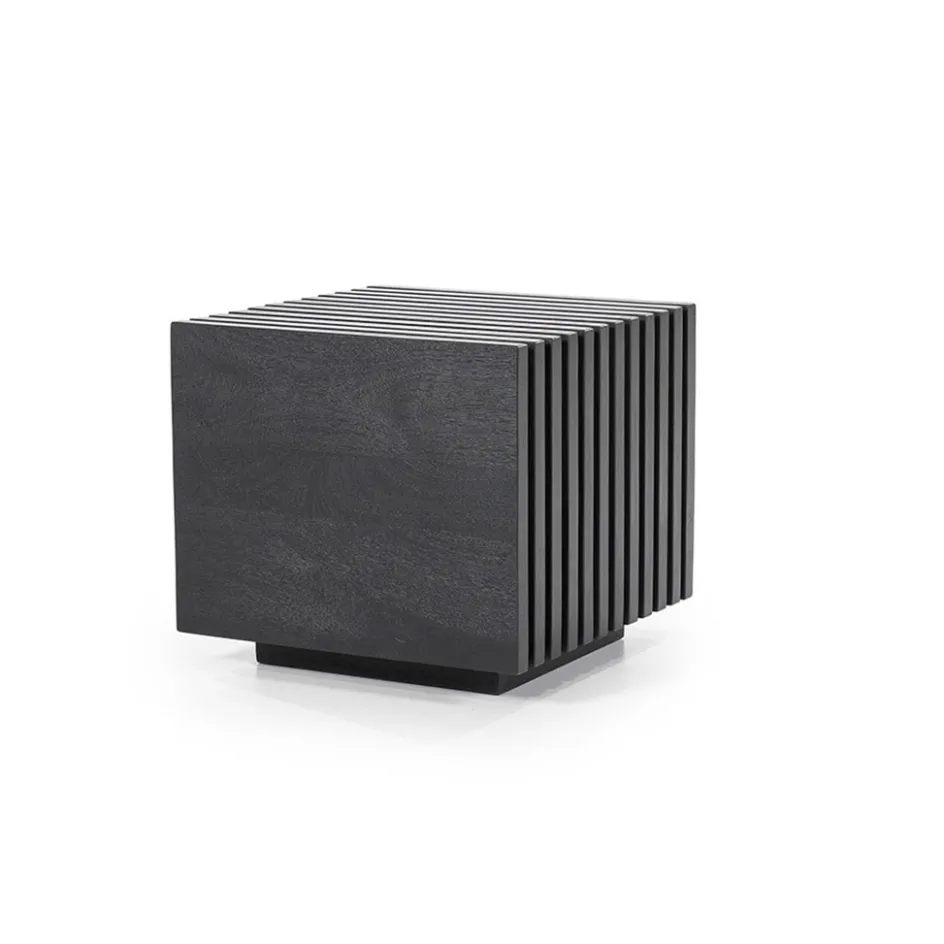 Stijlvolle zwarte bijzettafel van mangohout. Deze bijzettafel past mooi in een moderne, Scandinavische en landelijke woonstijl. Het mangohout is afgewerkt met een mat zwarte lak die de natuurlijke kenmerken van het hout benadrukt. De lak beschermt de bijzettafel. Deze bijzettafel komt ook als een salontafel.