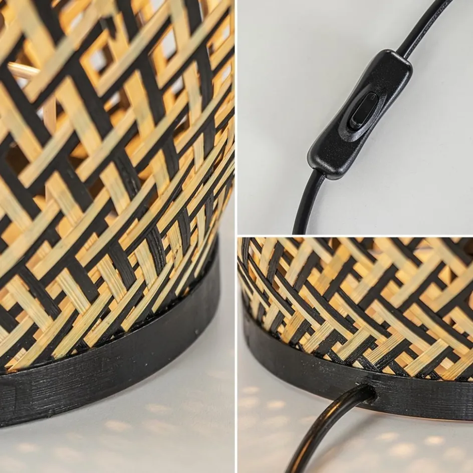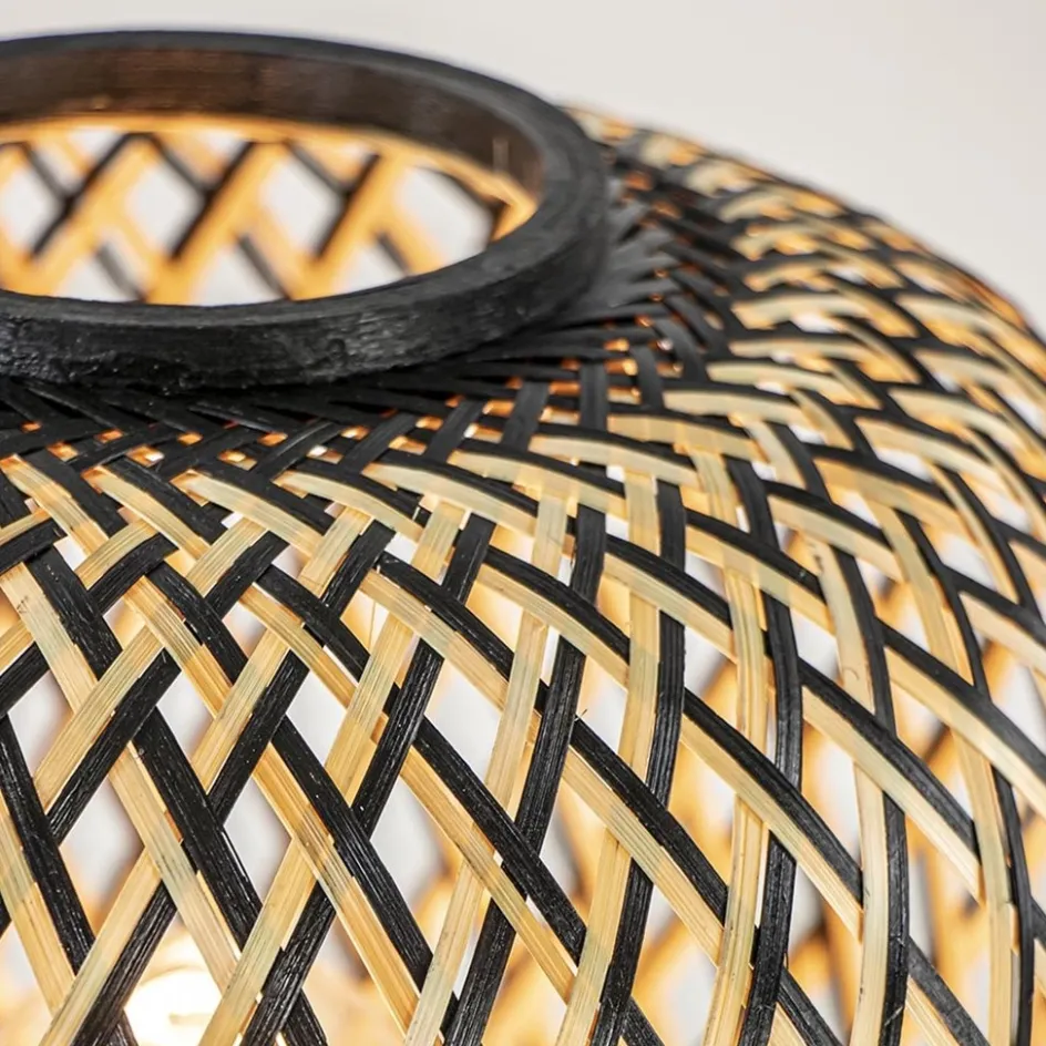 Ideaal voor een botanisch, Oosters of landelijk interieur. Deze tafellamp is volledig gemaakt van bamboe en uitgevoerd in het naturel met zwart. De tafellamp doet denken aan een vaas en heeft door de manier van vlechten een open structuur. De tafellamp is een sfeervolle toevoeging aan het interieur. De bamboe lamp is voorzien van een zwart snoer met een lengte van 180 cm. De schakelaar bevindt zich op 60 cm.