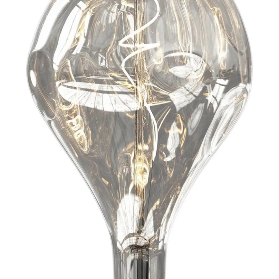 Een surrealistische versie van de klassieke gloeilamp. Deze druppelvormige bron met zilver glas komt uit de XXL serie en past super in de bijpassende E27 cord sets met de retro pendels. Het spiegelende glas geeft de lamp een luxe design uitstraling.