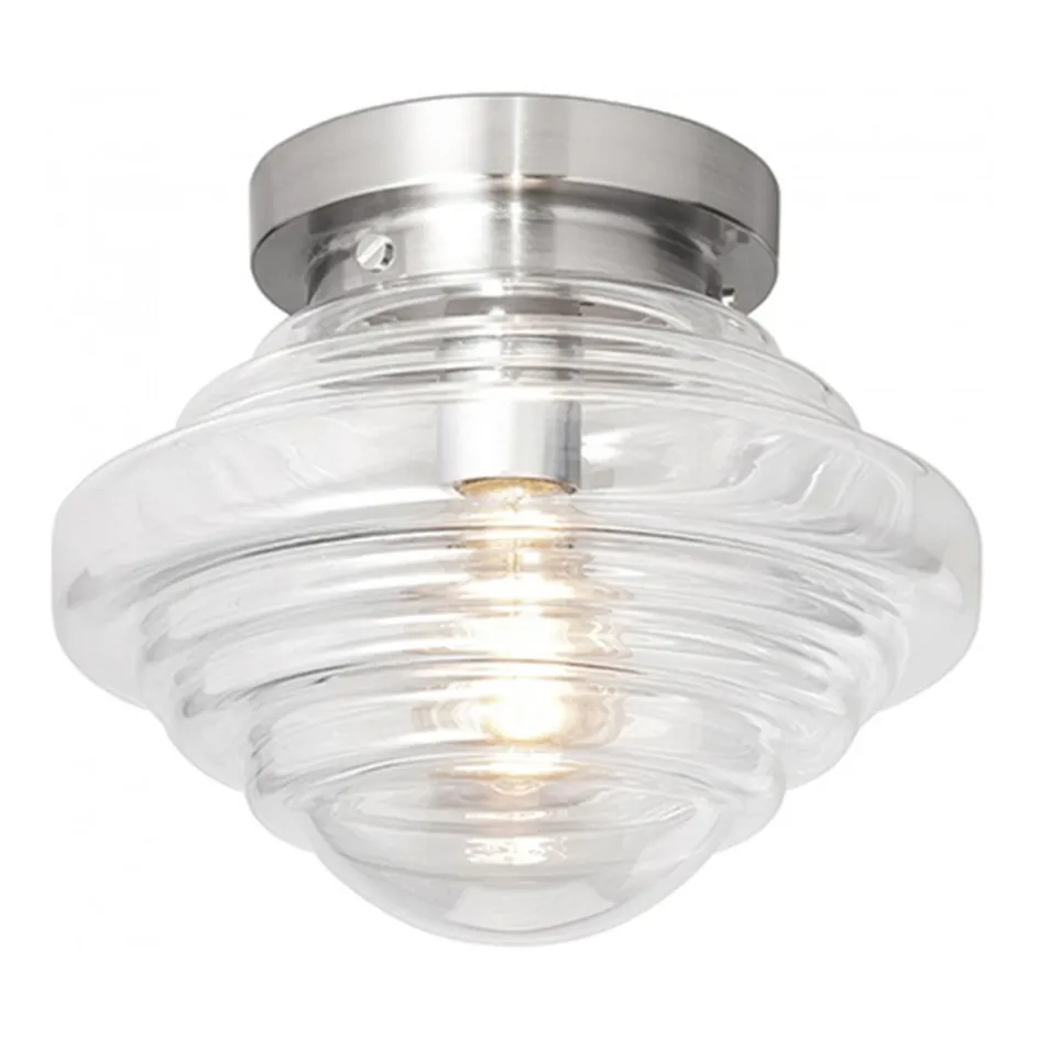Art Deco de stijl wordt onder andere gekenmerkt door geometrische figuren. Deze glazen art deco Plafonnière is hier een schoolvoorbeeld van:”Prachtig in een jaren 30 woning.” Het mooi gevormde heldere glas zorgt voor een frisse verschijning. De beste keuze voor een lamp als deze is een kooldraadlamp. Ideaal in de slaapkamer, keuken of woonkamer.