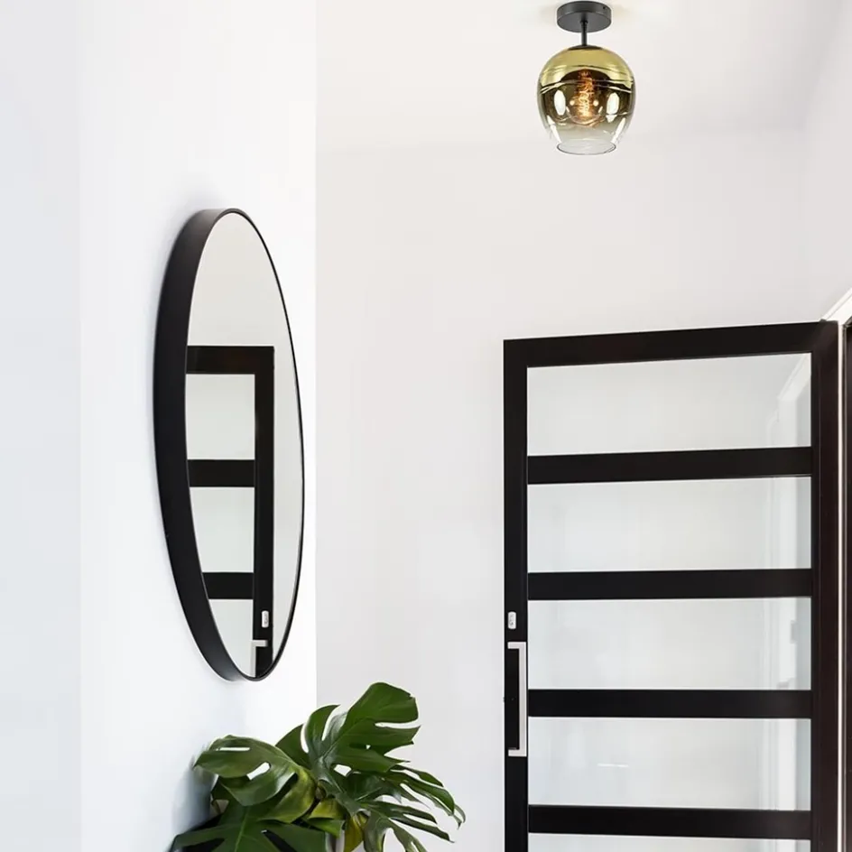 Een luxe plafondlamp, prima geschikt voor een hal, slaapkamer of zelfs het toilet. Deze plafondlamp is voorzien van bijzonder glas met een mooi effect. De glazen kap is afgewerkt met een gold gradient, een verloop in het glas van goud naar helder. Dit geeft de lamp een luxe chique uitstraling en maakt hem echt uniek. De glazen kap wordt bevestigd op een mat zwarte plafondbevestiging. De stijlvolle plafondlamp zwart met goud is dimbaar middels een externe dimmer (exclusief) en wordt geleverd zonder lichtbron (E27).