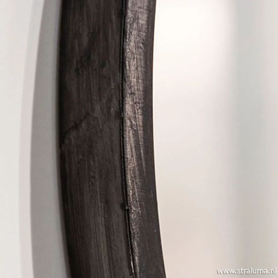 Deze stoere ronde spiegel heeft een rand gemaakt van metaal met een mooie zink afwerking. Dit geeft de spiegel een robuust uiterlijk Boven aan een knop met een ring zodat de spiegel eenvoudig op te hangen is. Prachtig in een landelijk, industrieel of stoer klassiek interieur. Bijvoorbeeld in de hal, slaapkamer of woonkamer.