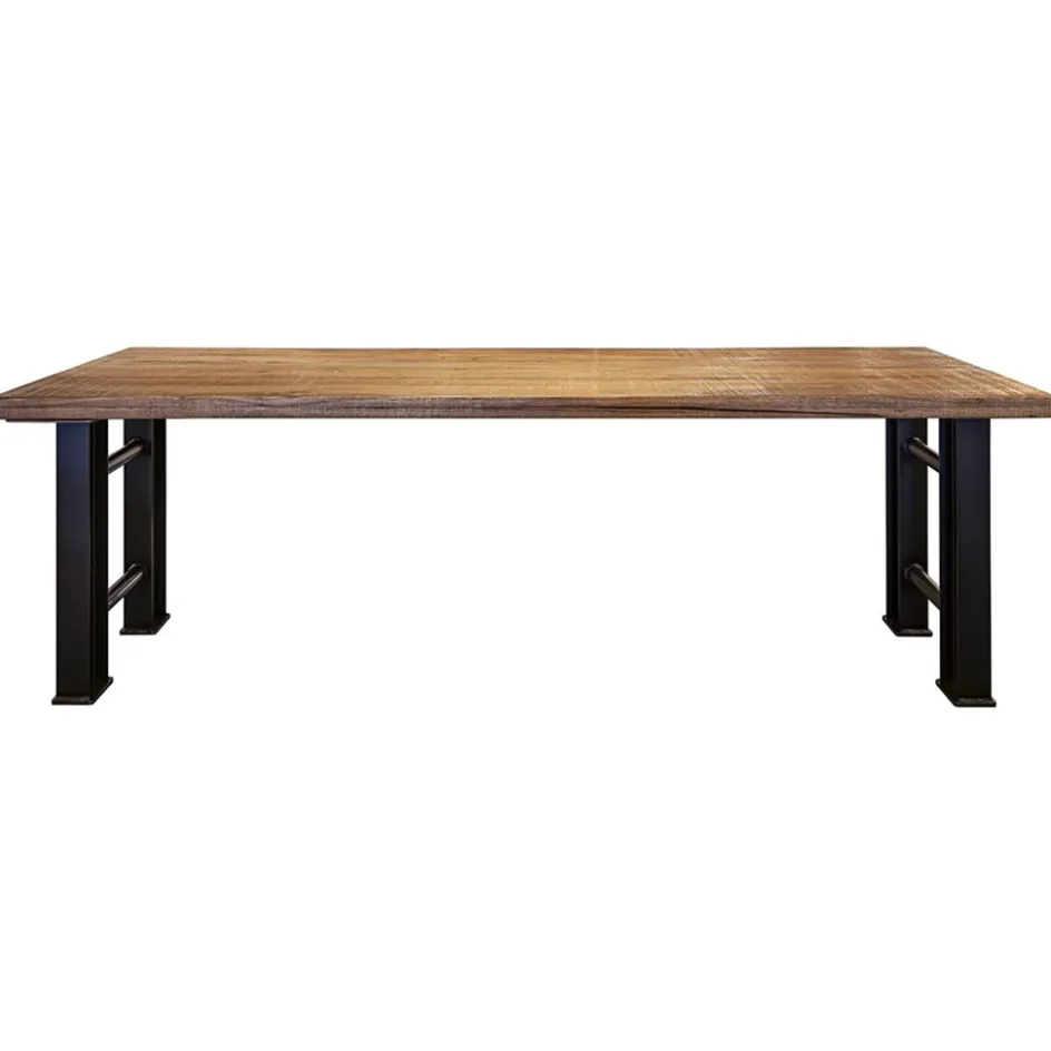 Een stoere industriële eettafel met een robuust blad. Het tafelblad heeft een afmeting van 225×100 cm en is 5 cm dik. Het blad is volledig van mangohout en heeft een grove uitstraling. De stoere metalen poten maken de industriële look helemaal af. De eettafel biedt genoeg ruimte van 6 stoelen en maakt dineren en natafelen een waar genot.