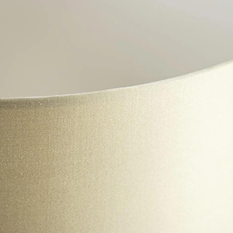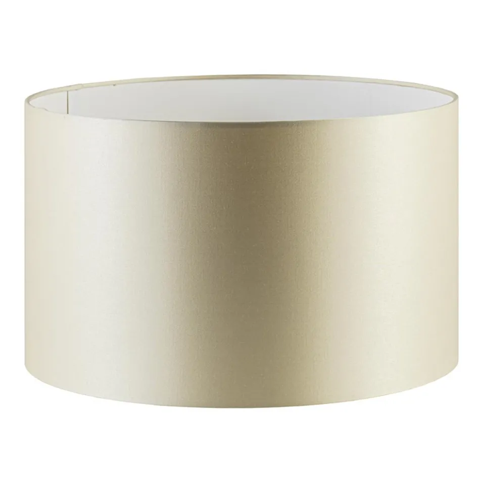 Een mooie lampenkap in het stof in de kleur creme. De kap heeft een licht glanzende look die zorgt voor een chique uitstraling. De cilinder vormige kap heeft een doorsnede van 40 cm en een hoogte van 25 cm. De binnenzijde van de kap is wit.
