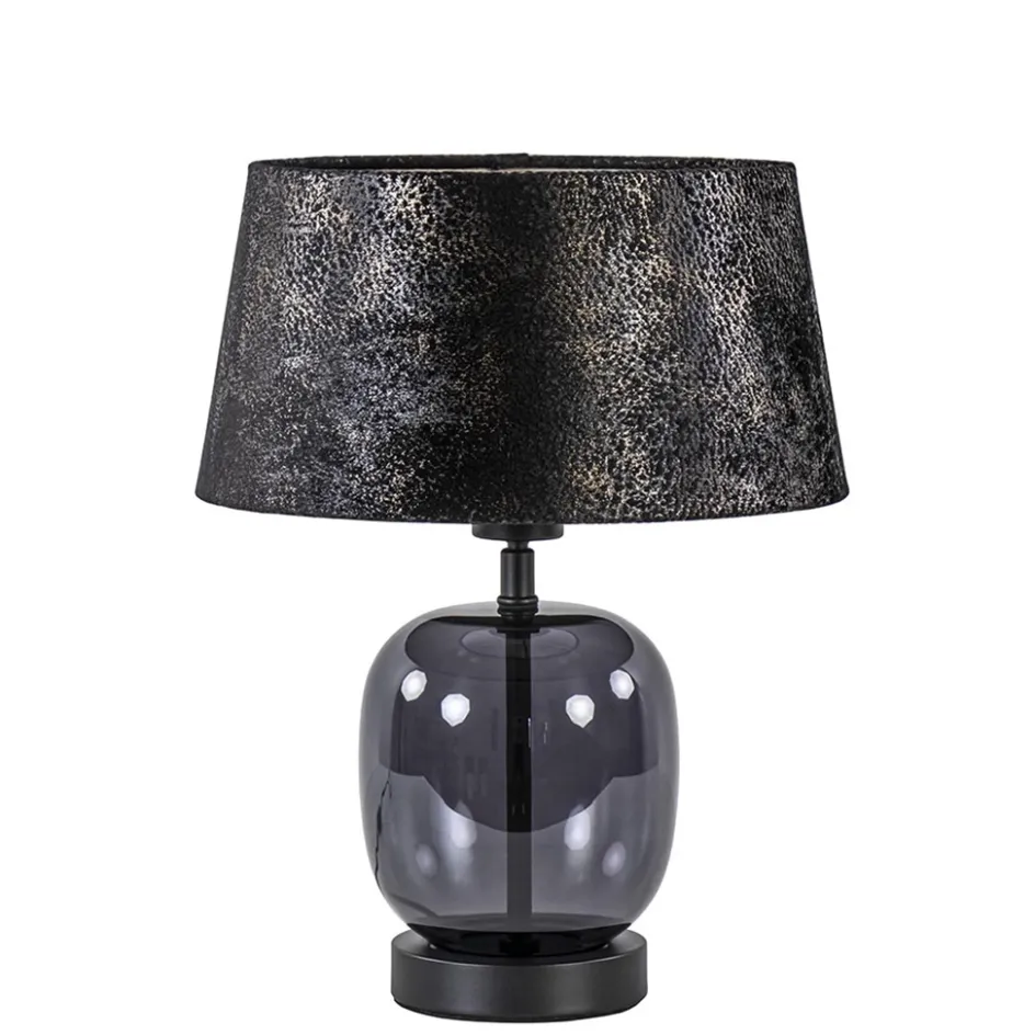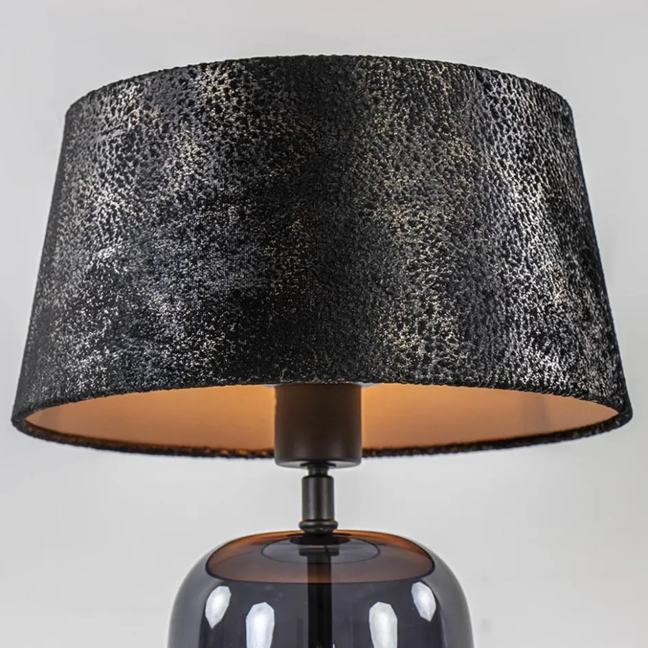 Kleine tafellamp zwart glas met stoffen kap>Straluma Sale