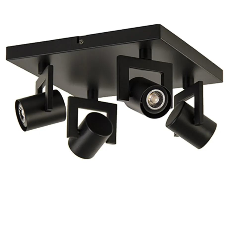 Een mooie moderne vierkante plafondspot die prima past in een modern of scandinavisch interieur. De mat zwarte LED spotjes hebben een platte beugel die kunnen draaien en waarin de kapjes kunnen kantelen. Zo zijn de LED plafondspotjes altijd de juiste kant op te draaien. Dit maakt deze 4-lichts plafondlamp ideaal voor de woon-, slaapkamer of de keuken.