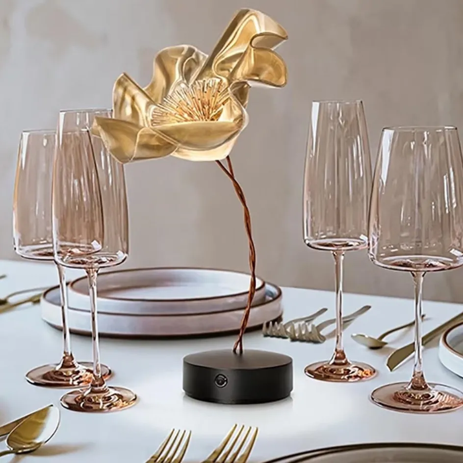 Een prachtig desgin dat met de hand wordt vervaardigd uit de mooiste materialen. De elegante tafellamp is oplaadbaar en daarmee volledig draadloos. U kunt deze dan ook overal in huis meenemen en neerzetten. Ideaal om een tafel sfeervol te dekken of een open kast te voorzien van wat extra sfeer. De elegante tafellamp is in de vorm van een bloem. De draadloze tafellamp is dimbaar dmv de touchdimmer op de voet. Het tafellampje wordt inclusief oplaadkabel geleverd.