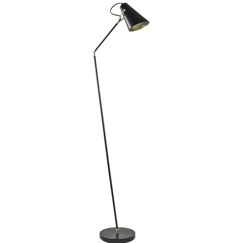 De vloerlamp Barre is een ideale huisgenoot. De zwart met gouden vloerlamp is op diverse plekken te verstellen. Zo kan de arm van het armatuur op twee plekken kantelen en kan de zwarte kap ook nog draaien. Zo kunt u de lamp altijd zo zetten dat hij het beste verlicht. Ideaal wanneer u de lamp naast uw bank gebruikt als leeslamp of voor het uitlichten van een donkere hoek. Het snoer loopt netjes door het armatuur en heeft vanaf de voet nog een lengte van 190 cm, waarbij er een voetschakelaar op 40 cm van de voet zit. Vloerlamp Barre wordt geleverd zonder lichtbron (E27).