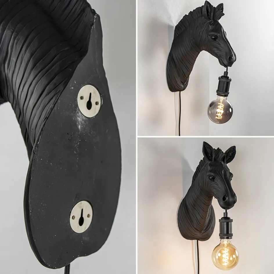 Helemaal trendy zijn de lampen in de vorm van dieren. Deze leuke zebra wandlamp past helemaal in de populaire botanische woonstijl. De combinatie van mat zwart met het zwart van de fitting zorgt voor een stoer/trendy effect. Leuk voor in de woonkamer of slaapkamer. Deze zebra wandlamp wordt geleverd met zwart snoer.