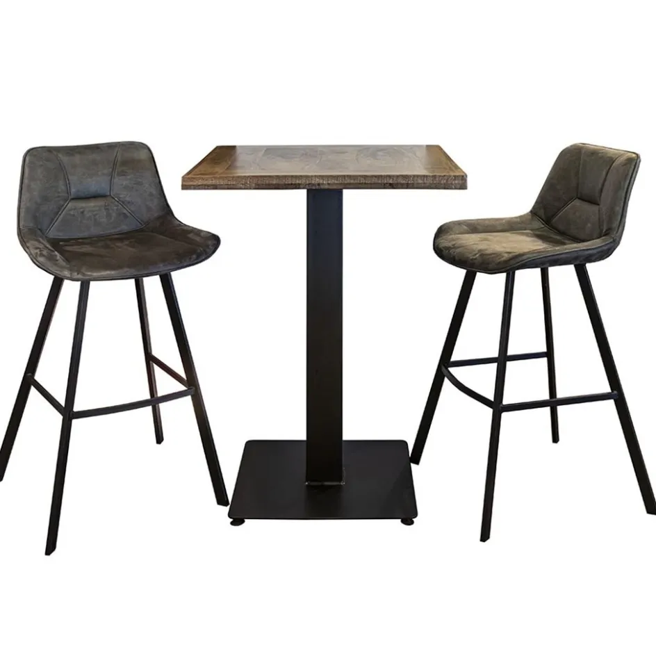 Een leuke bartafel om heerlijk aan te borrelen. De tafel heeft een afmeting van 70×70 cm en het blad is 5 cm dik. Het vierkante mango houten blad wordt ondersteund door een stevige metalen poot die is voorzien van een mat zwarte finish. De combinatie van het zwart en het hout geeft de bartafel een stoere look die mooi matcht in een landelijk of industrieel interieur. De bartafel heeft een hoogte van 106 cm.